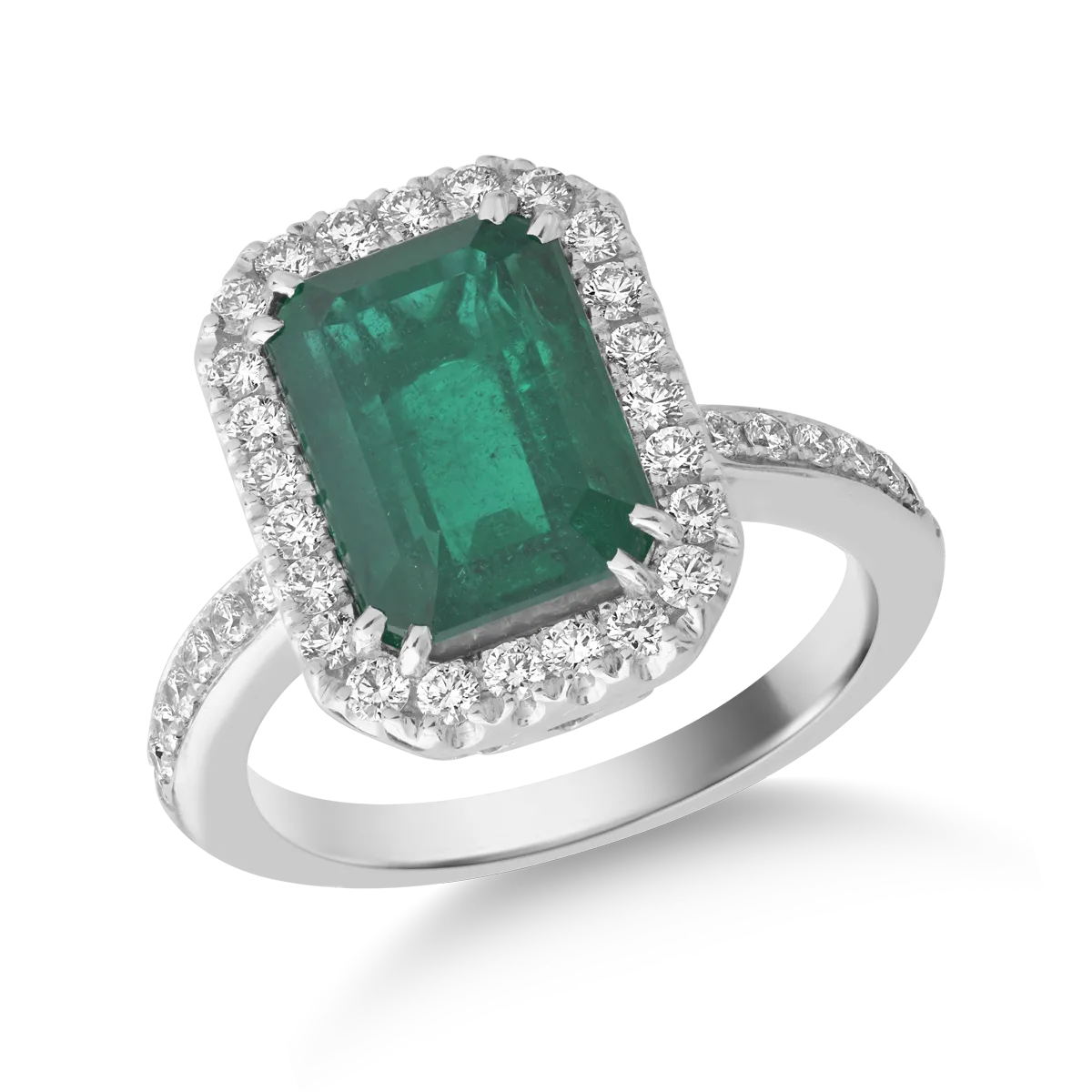Inel din aur alb cu smarald octogonal de 4.68ct si diamante de 0.58ct