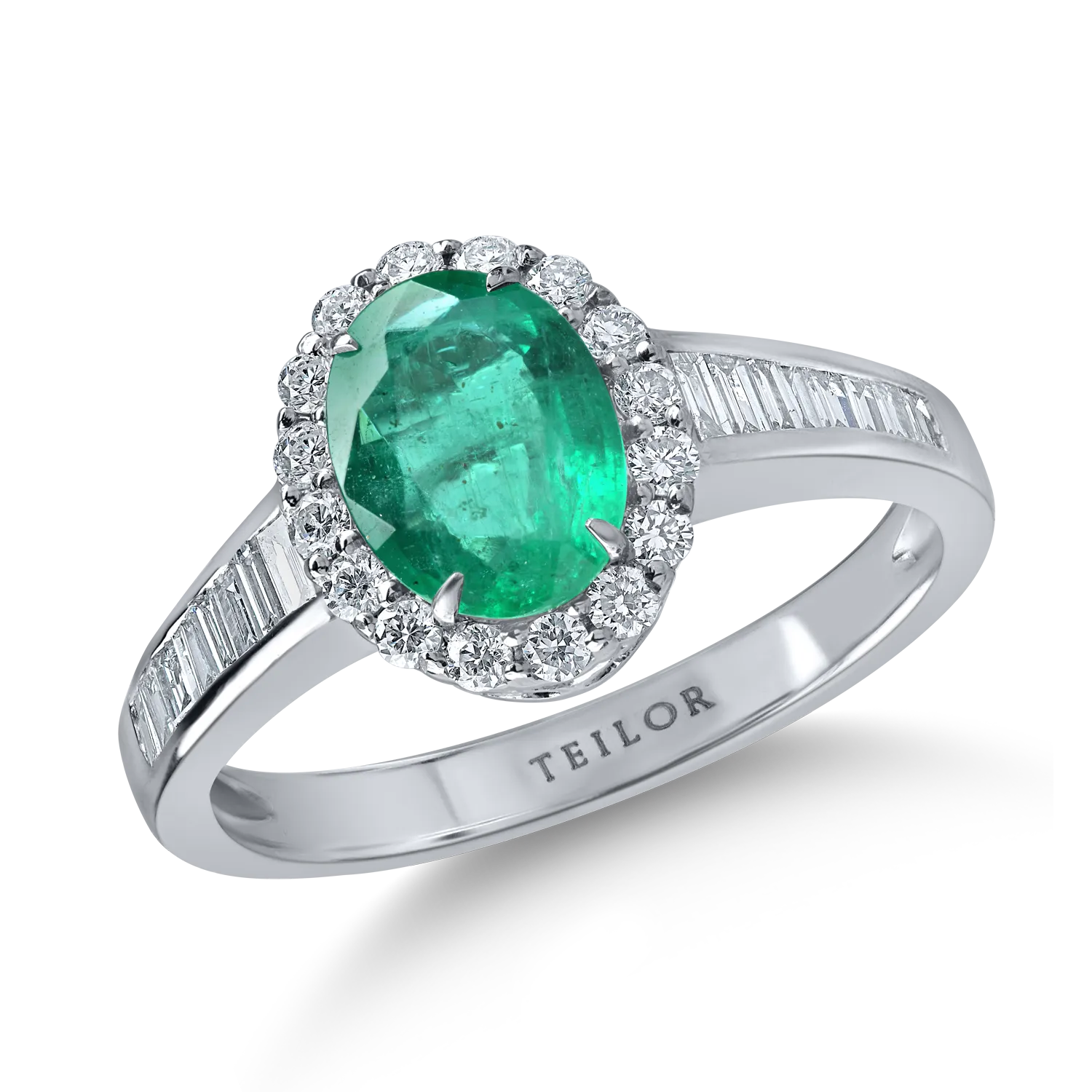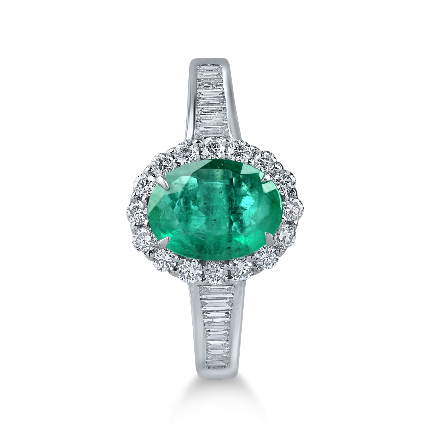 Inel din aur alb cu smarald oval de 0.9ct si diamante de 0.4ct