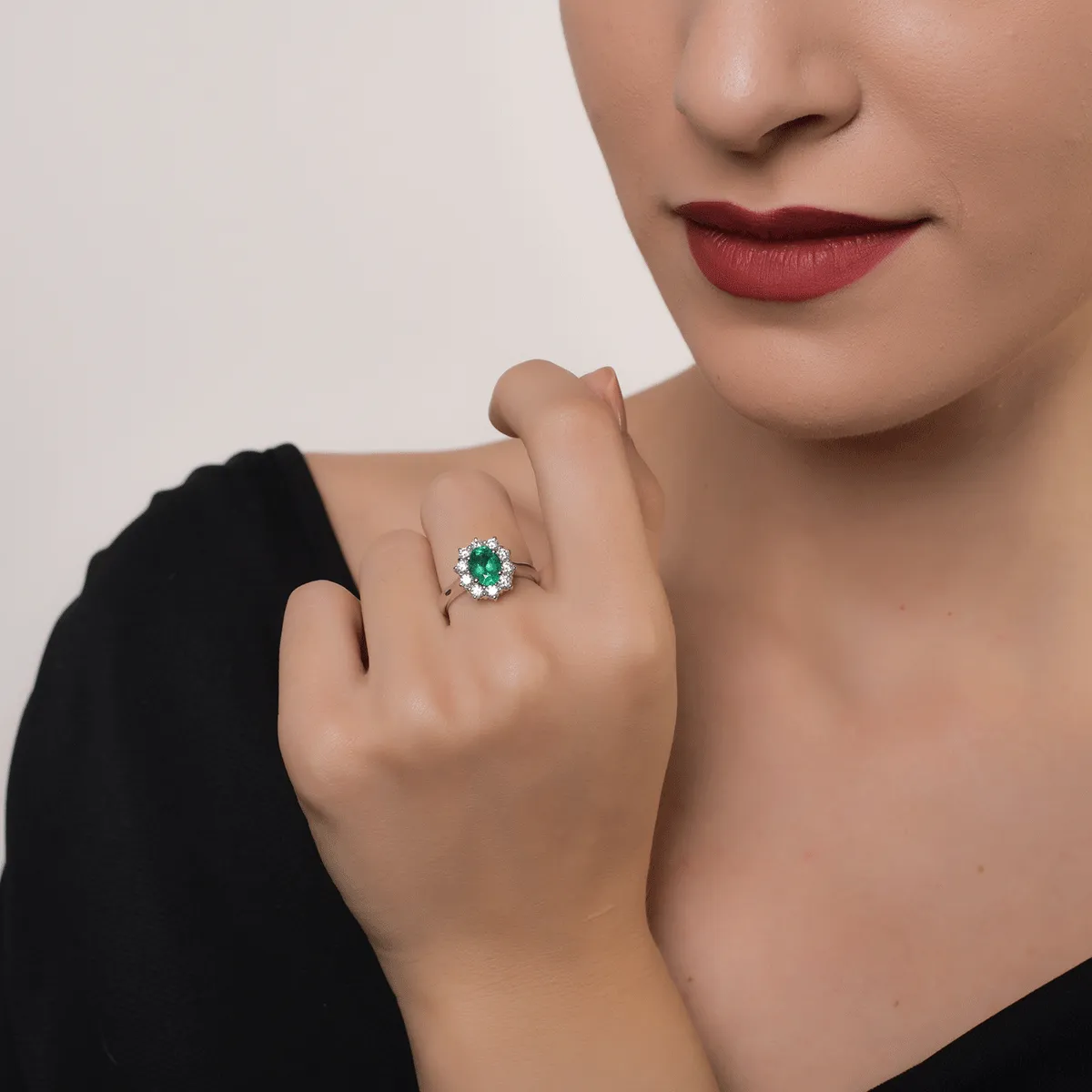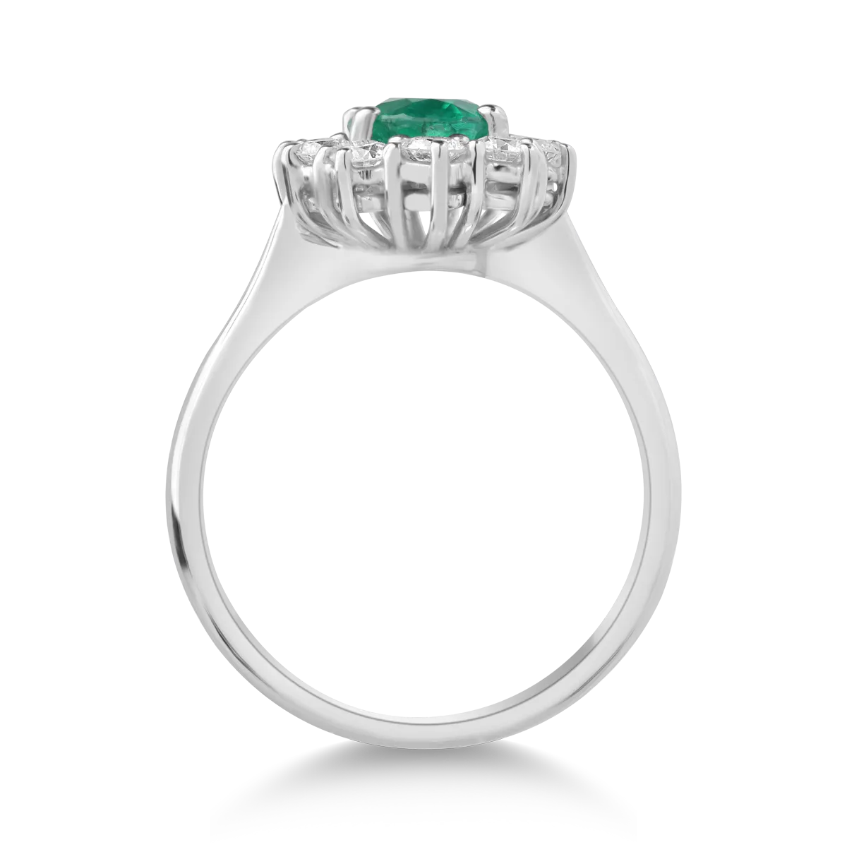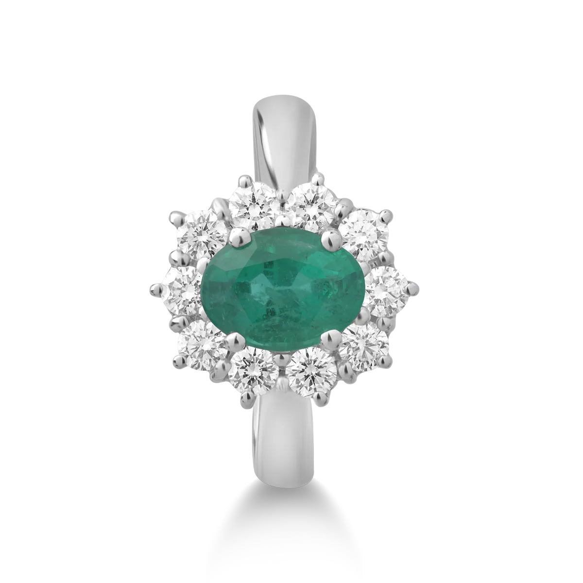 Inel din aur alb cu smarald oval de 1.09ct si diamante de 0.5ct