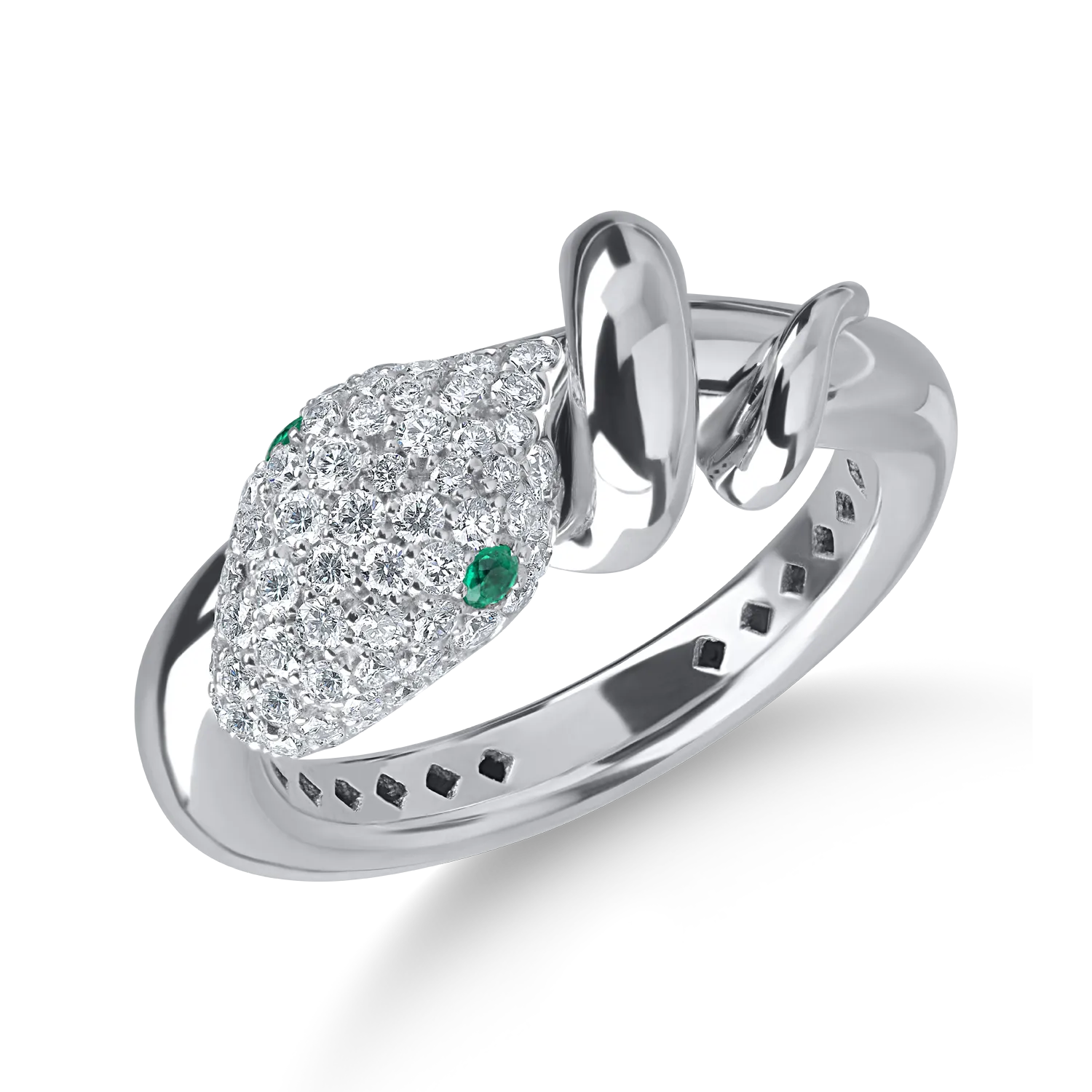 Feminitatea capata noi forme de expresie. Un inel din aur alb cu smaralde de 0.05ct si diamante microsetting de 0.5ct in care se reflecta dragostea pentru eleganta si rafinament. Lasa-te purtata de imaginatie si exploreaza universul unic al TEILOR.