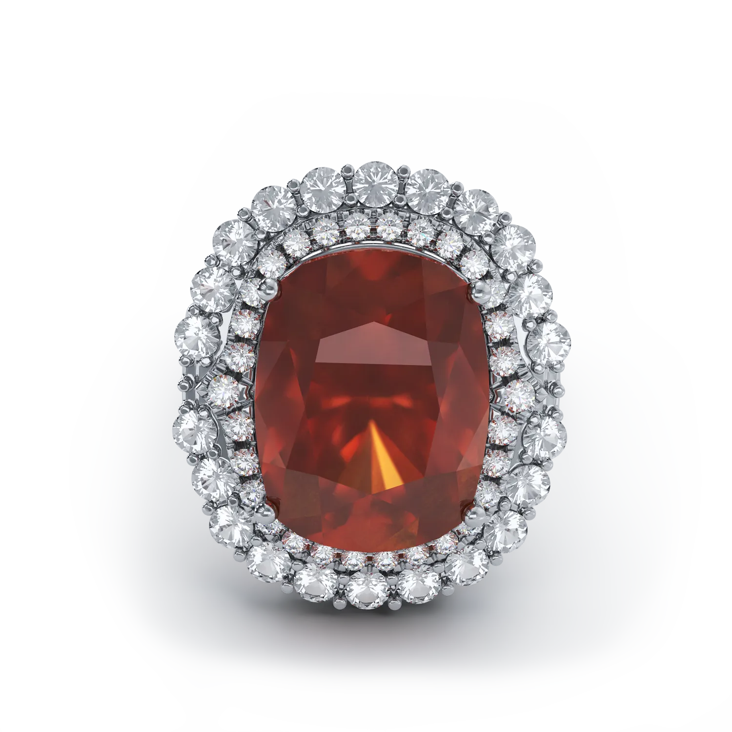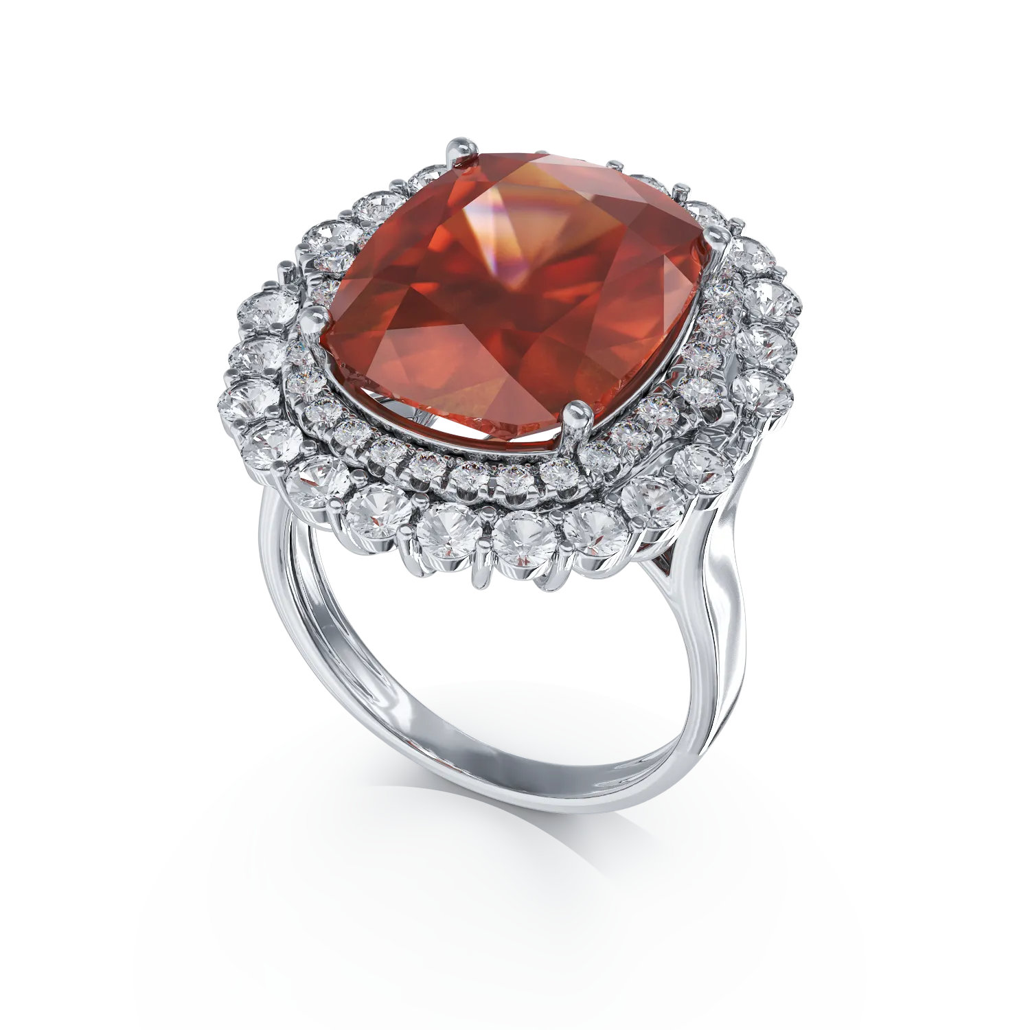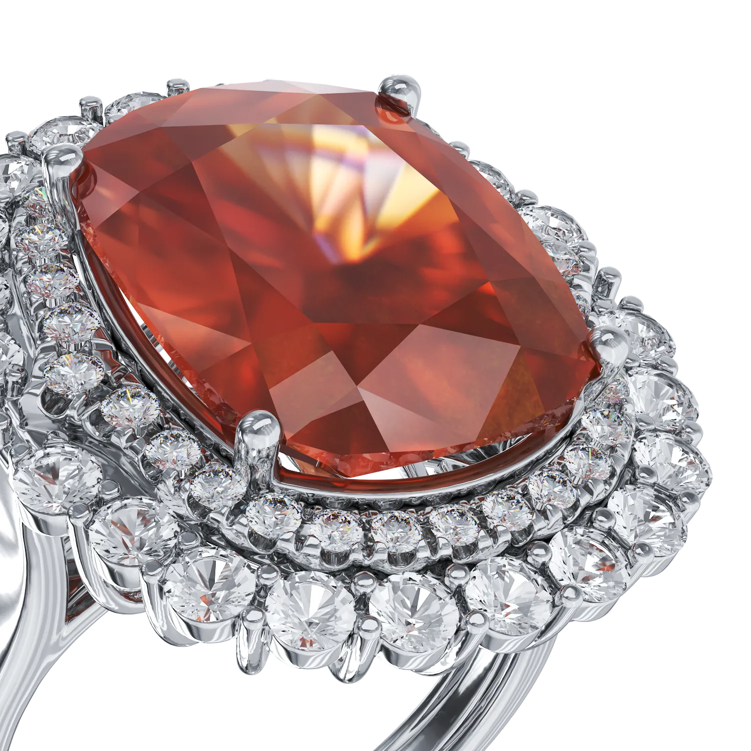 Inel din aur alb cu spessartin oval de 15.35ct si diamante de 1.31ct