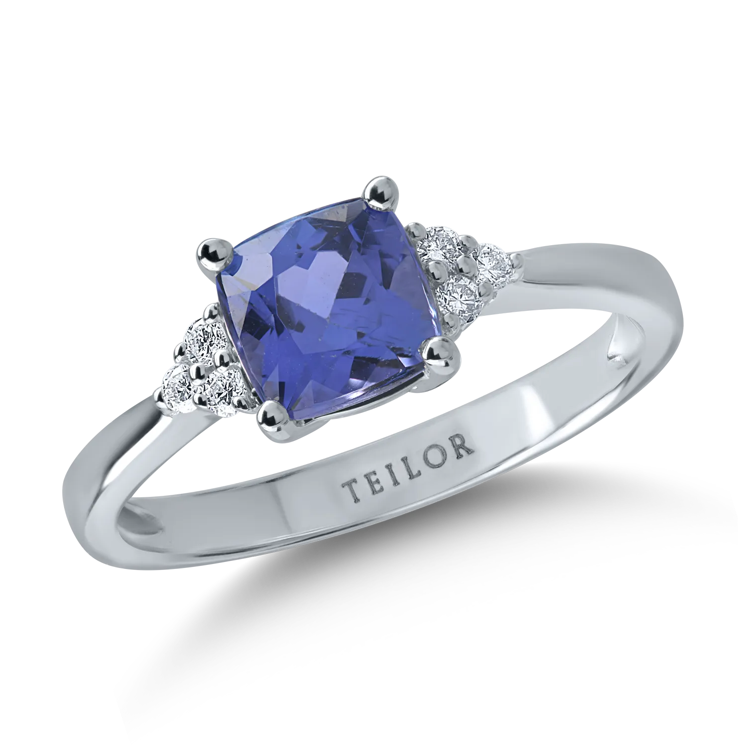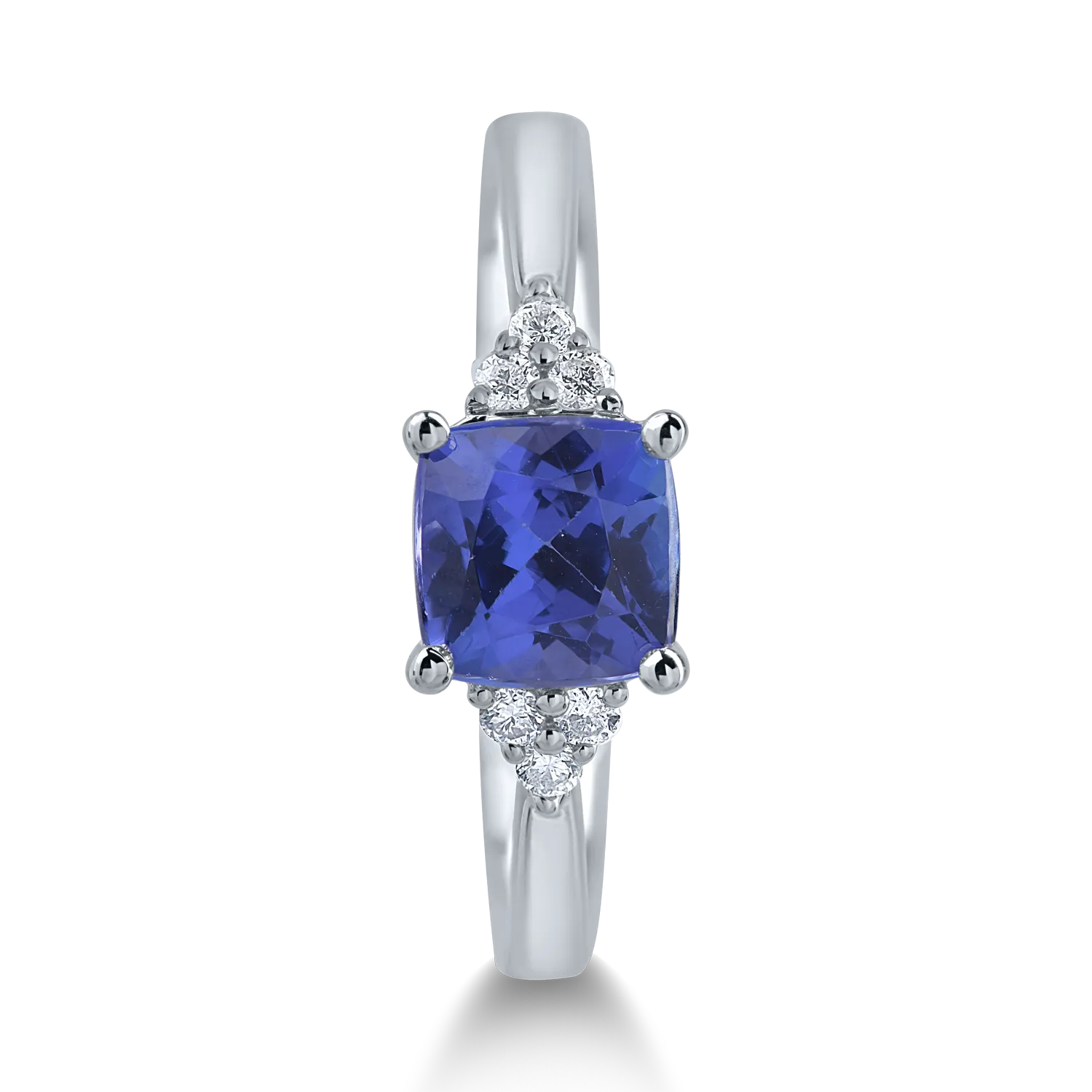 Inel din aur alb cu tanzanit cushion de 1.48ct si diamante de 0.09ct