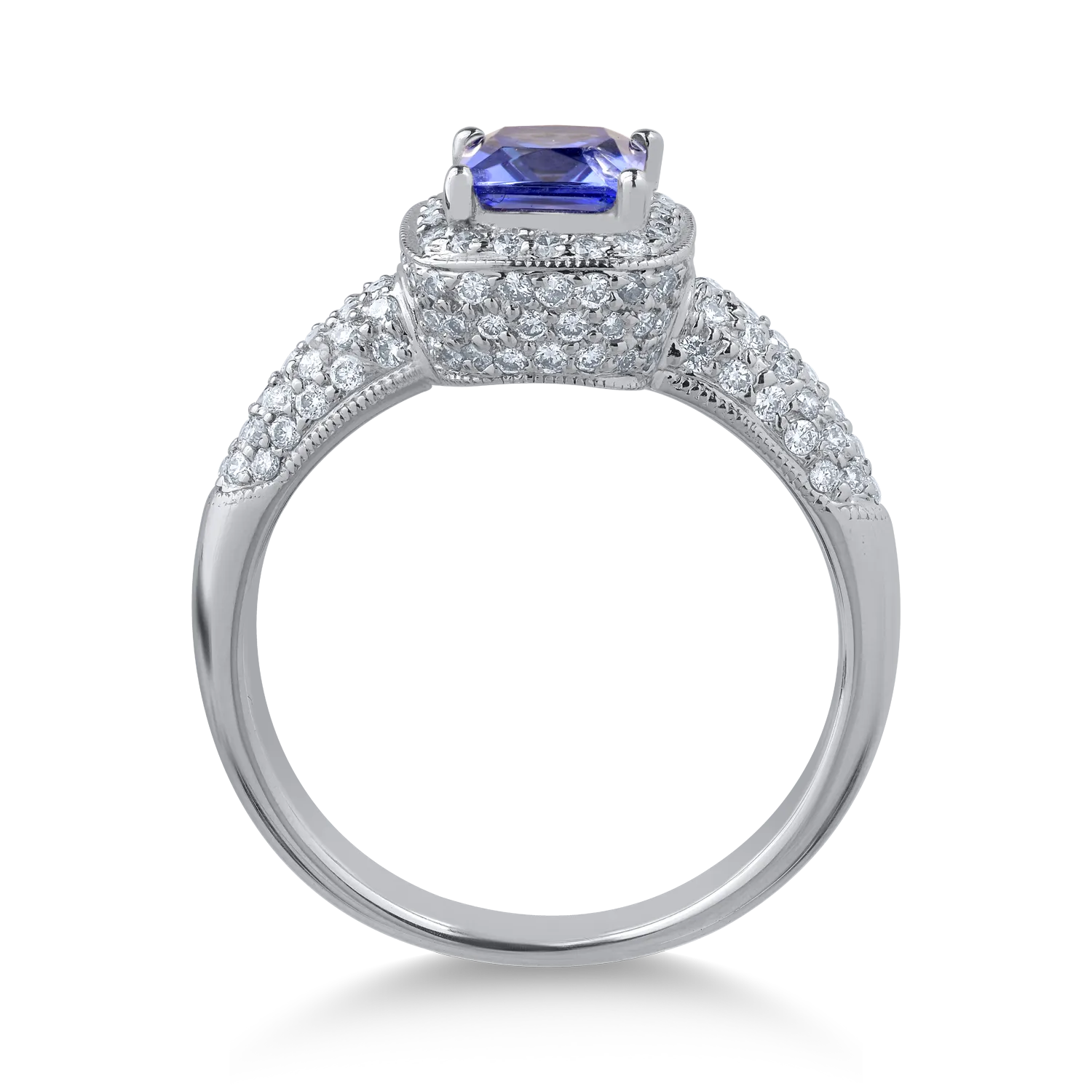 Inel din aur alb cu tanzanit de 0.73ct si diamante de 0.65ct