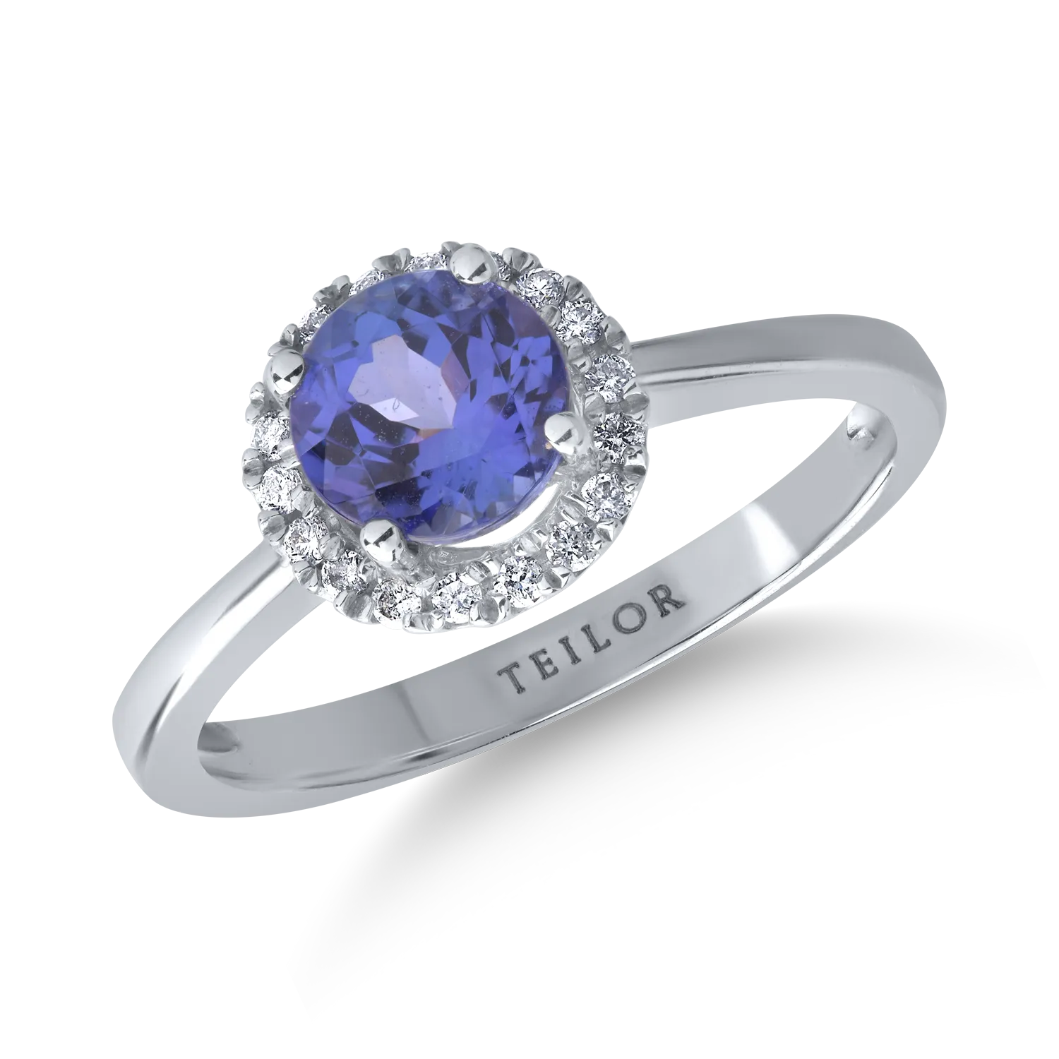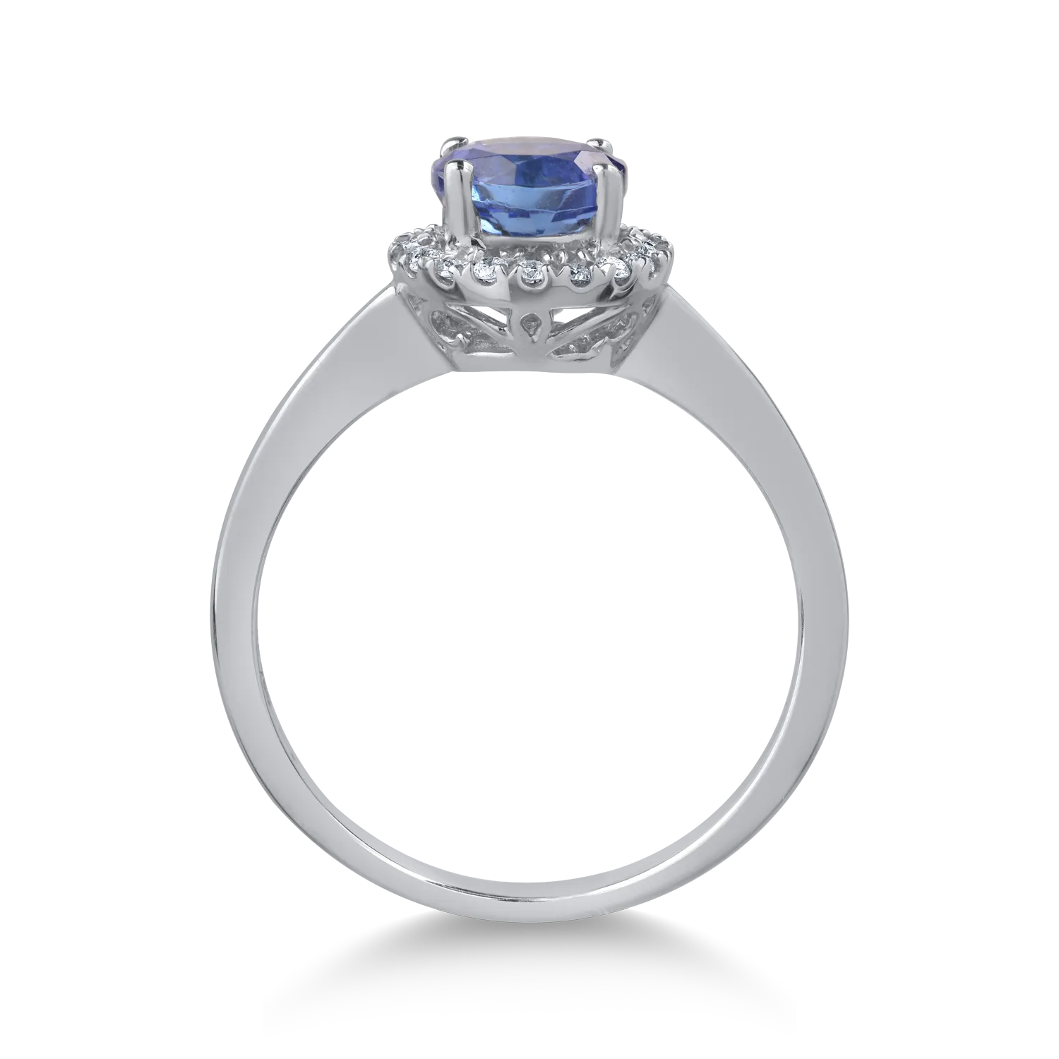 Inel din aur alb cu tanzanit de 1.05ct si diamante de 0.11ct