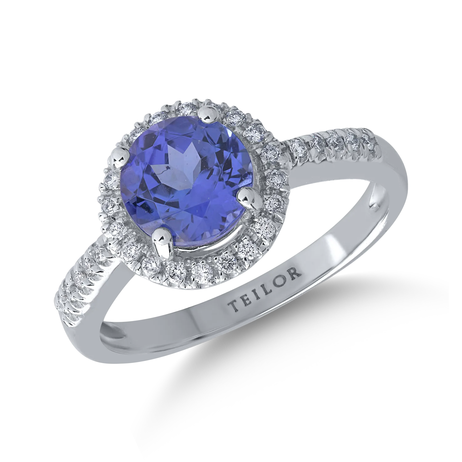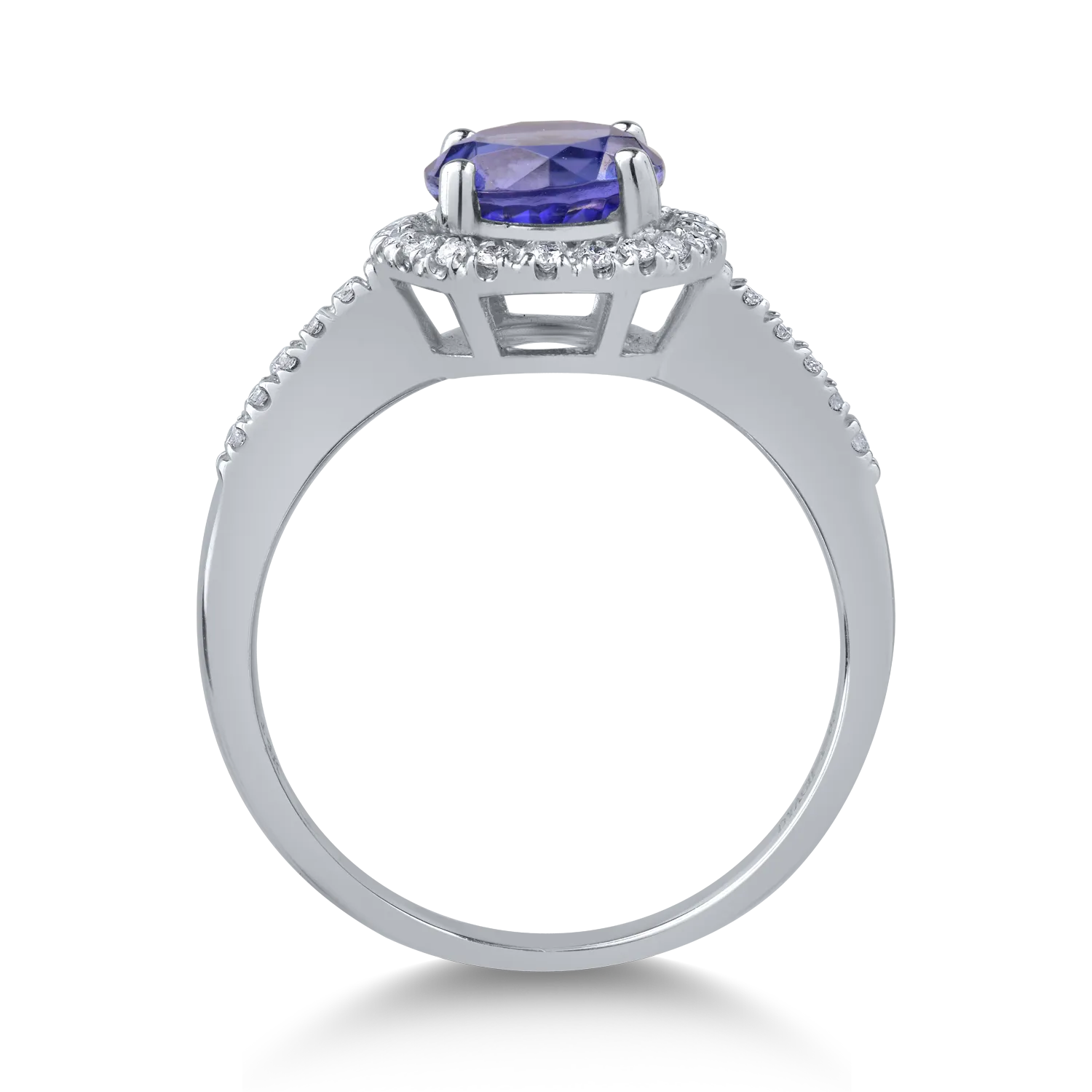 Inel din aur alb cu tanzanit de 1.63ct si diamante de 0.16ct