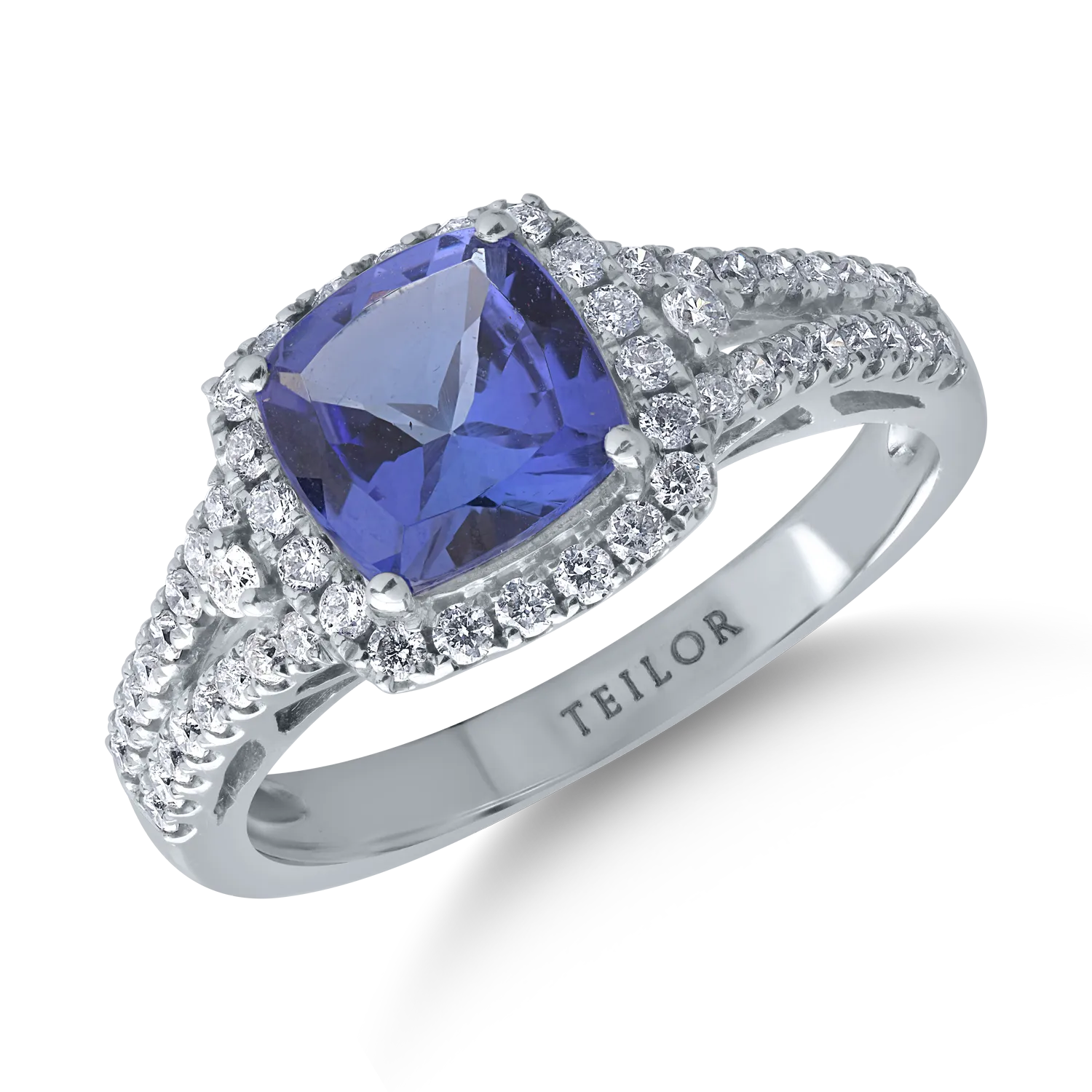 Inel din aur alb cu tanzanit de 1.8ct si diamante de 0.44ct