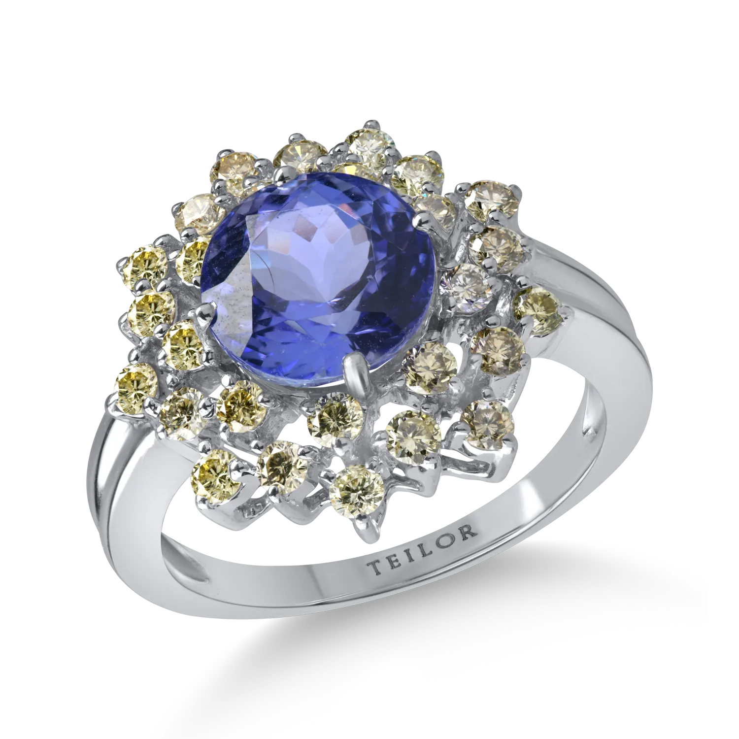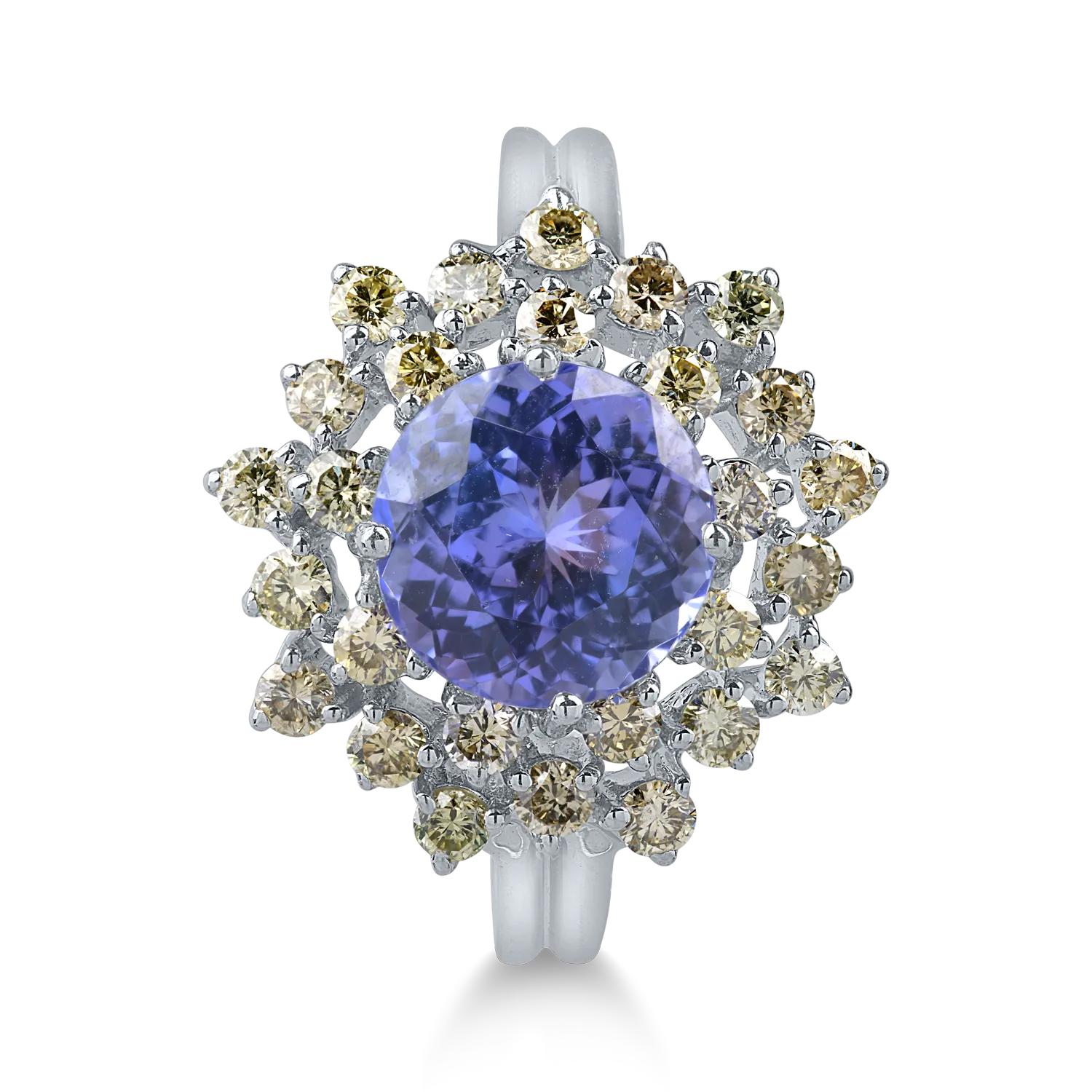 Inel din aur alb cu tanzanit de 3.5ct si diamante de 0.9ct