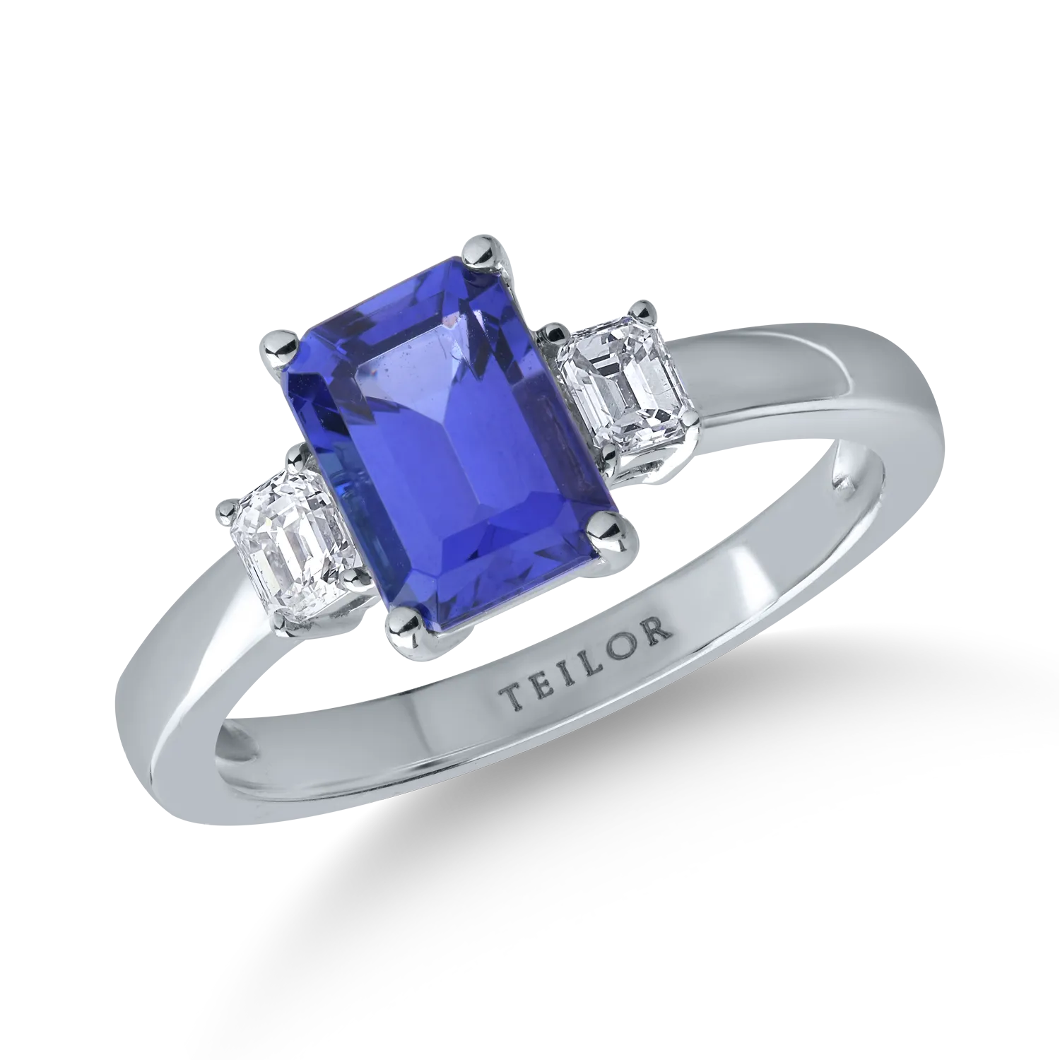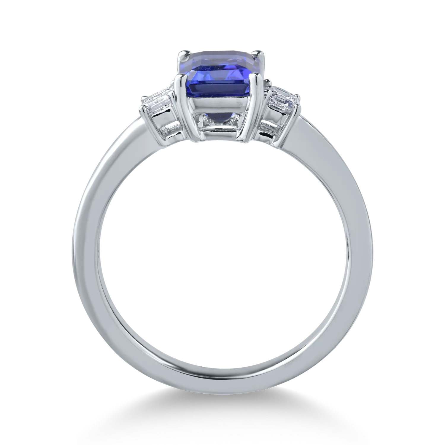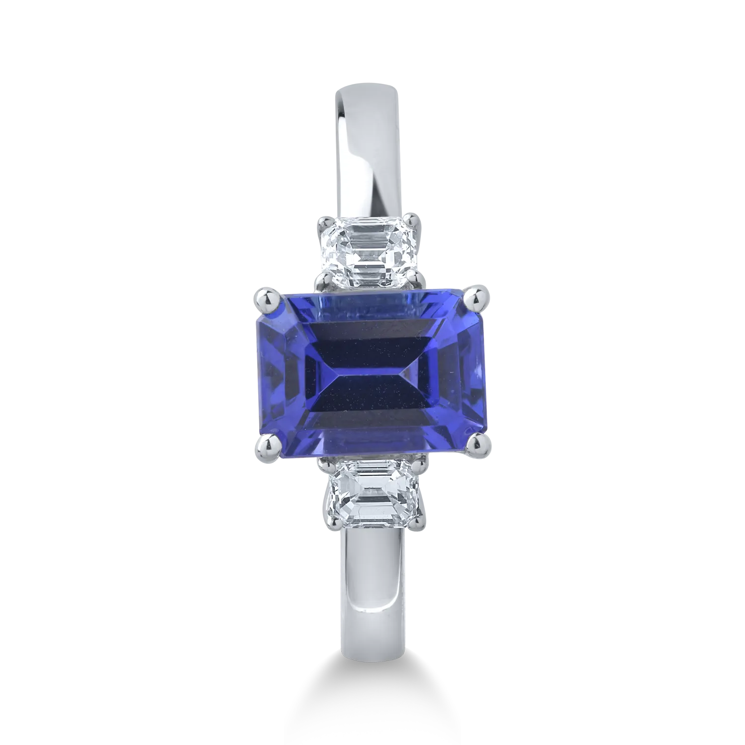 Inel din aur alb cu tanzanit emerald de 1.8ct si diamante de 0.3ct