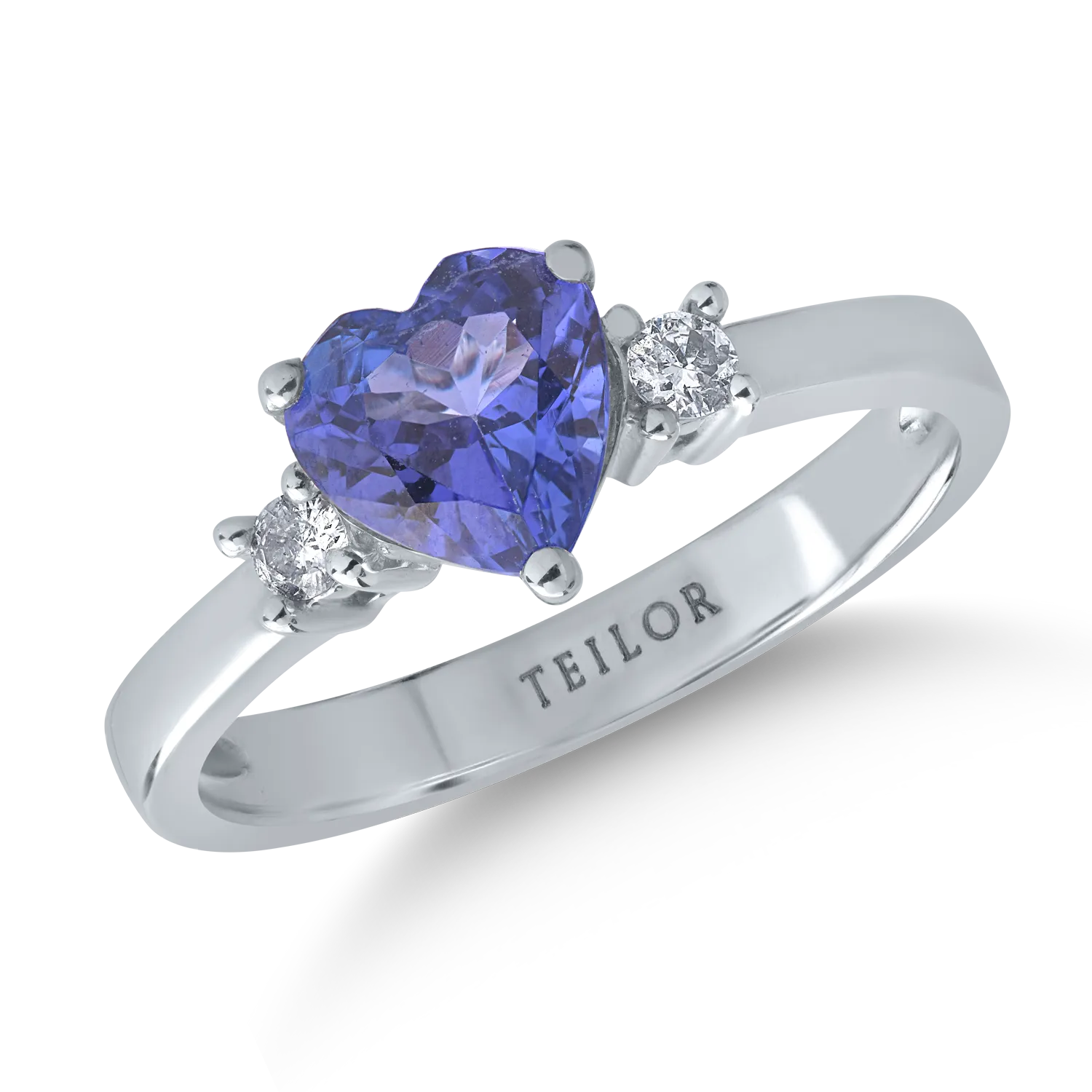 Inel din aur alb cu tanzanit heart de 1.1ct si diamante de 0.1ct