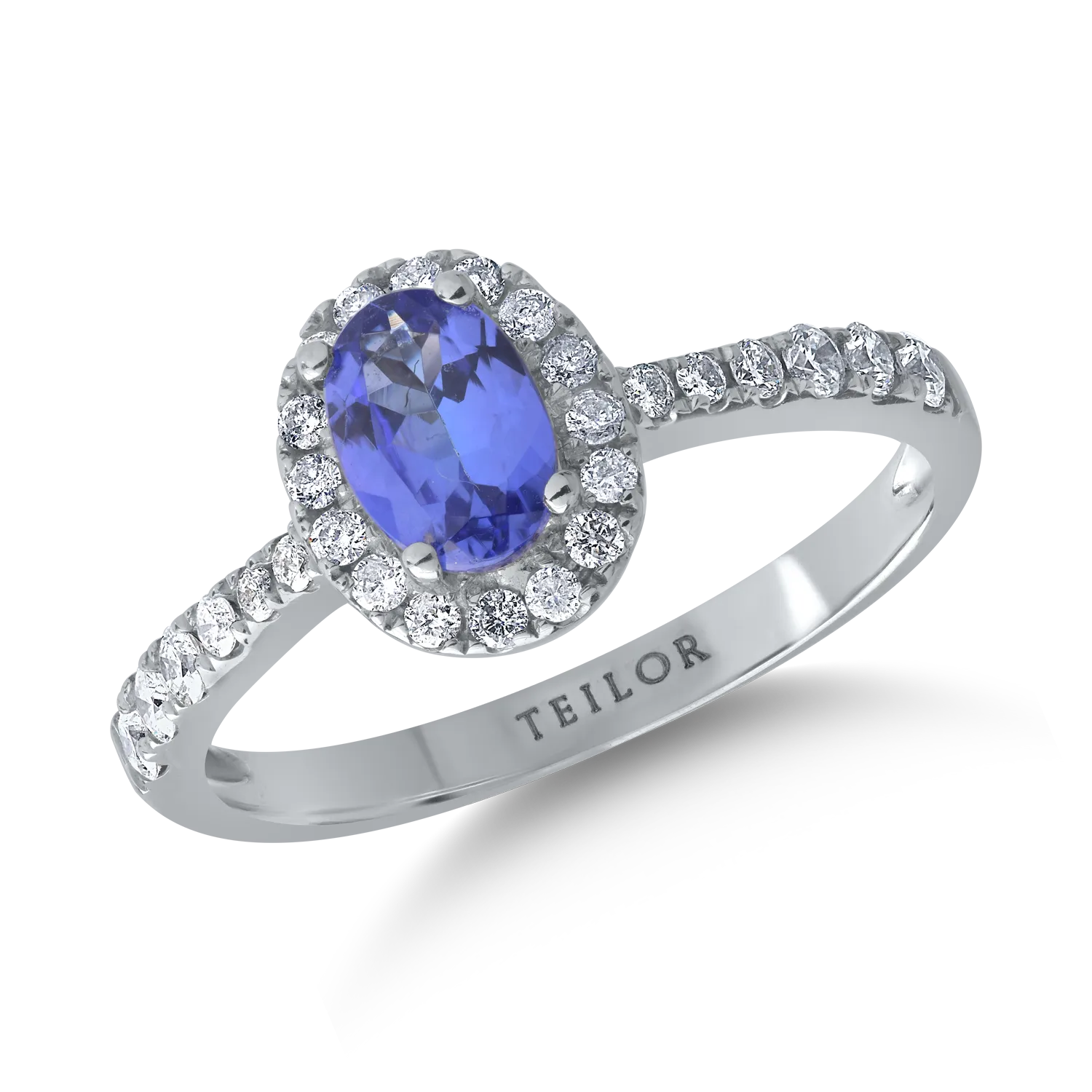 Inel din aur alb cu tanzanit oval de 0.6ct si diamante de 0.3ct