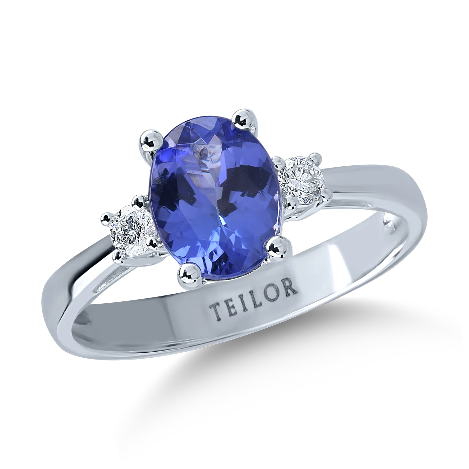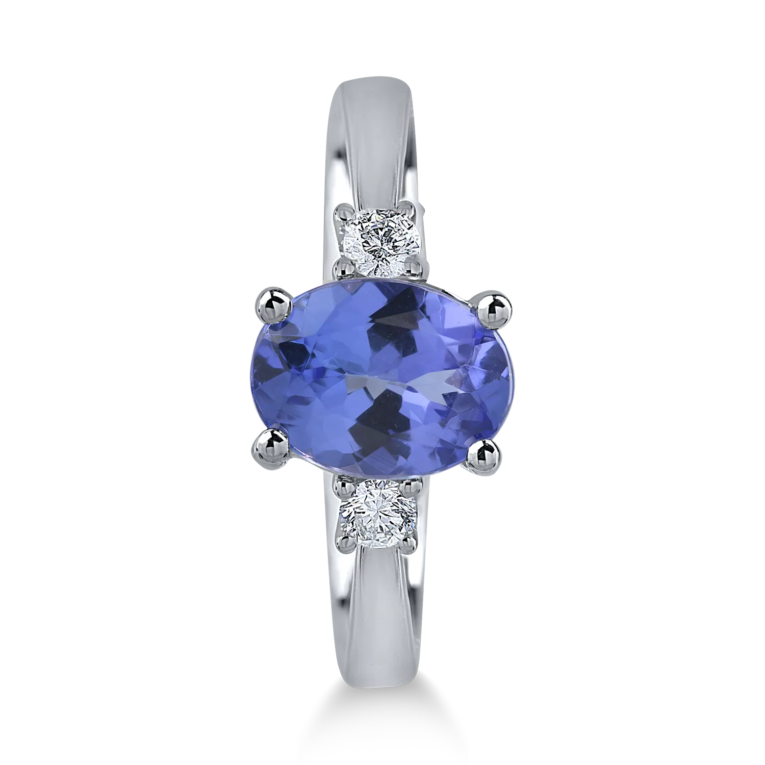 Inel din aur alb cu tanzanit oval de 1.6ct si diamante de 0.1ct