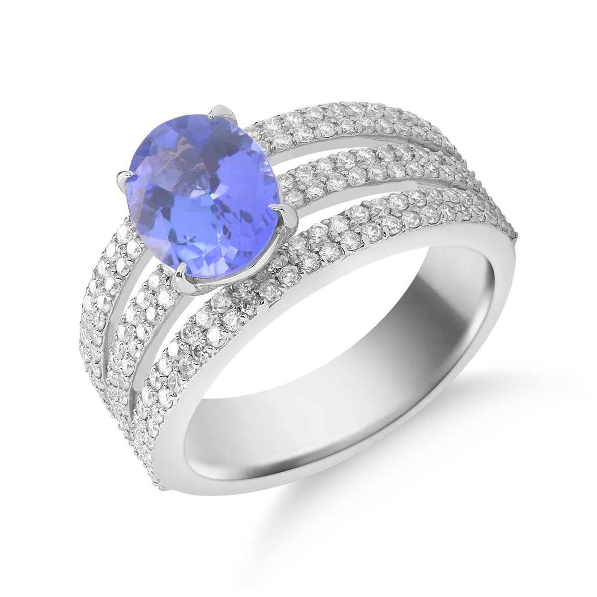 Inel din aur alb cu tanzanit oval de 2.09ct si diamante de 0.8ct