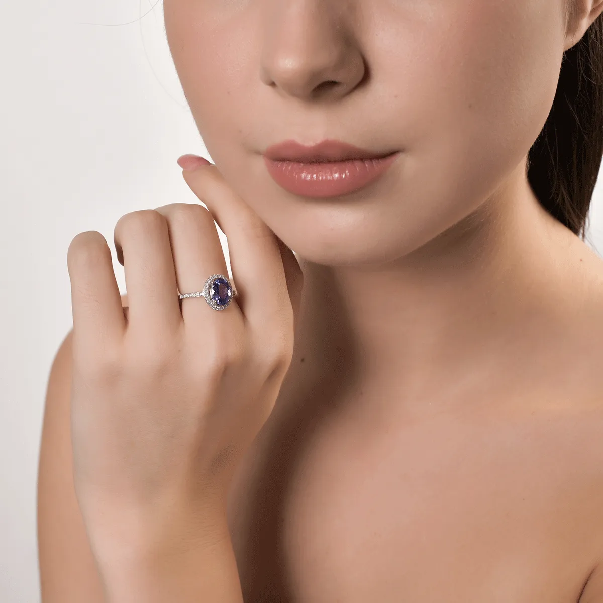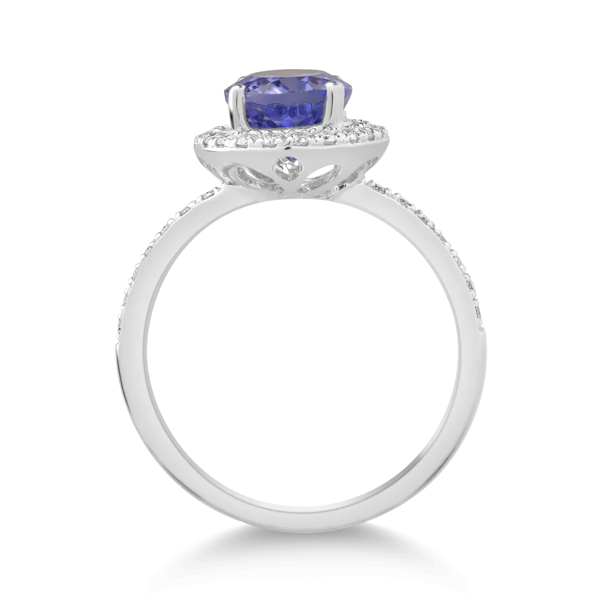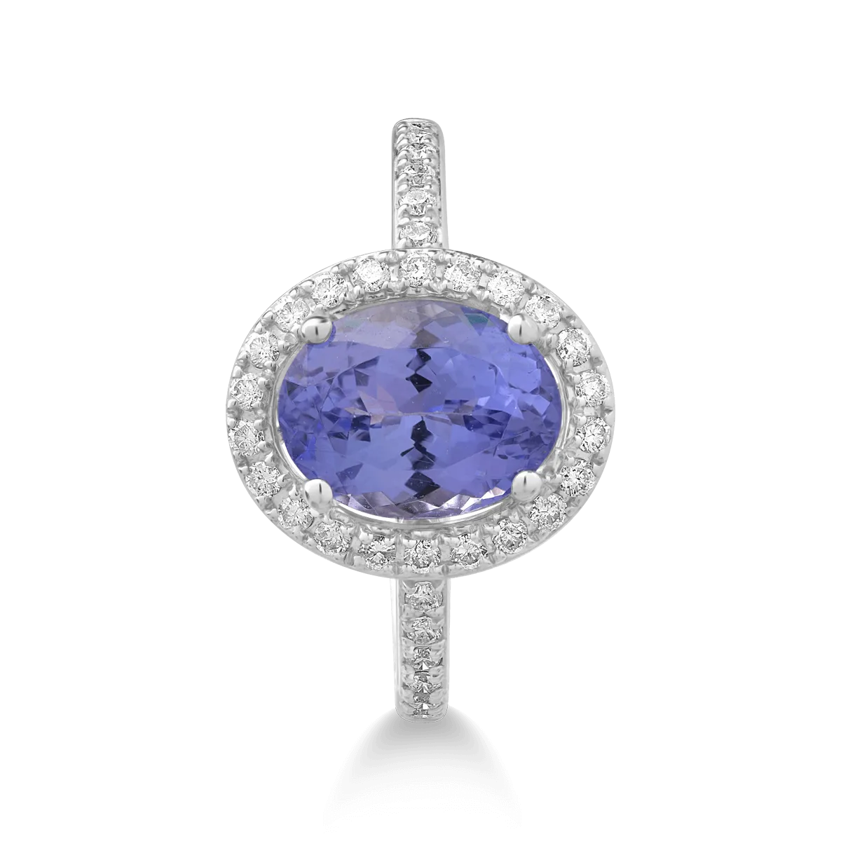 Inel din aur alb cu tanzanit oval de 2.1ct si diamante de 0.2ct