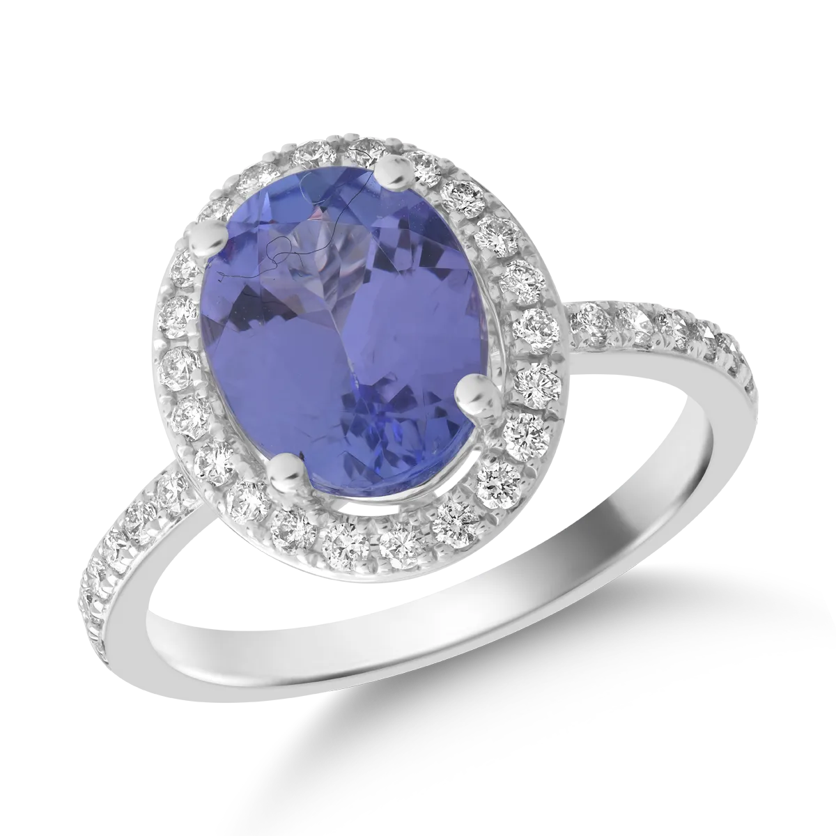 Inel din aur alb cu tanzanit oval de 2.1ct si diamante de 0.2ct