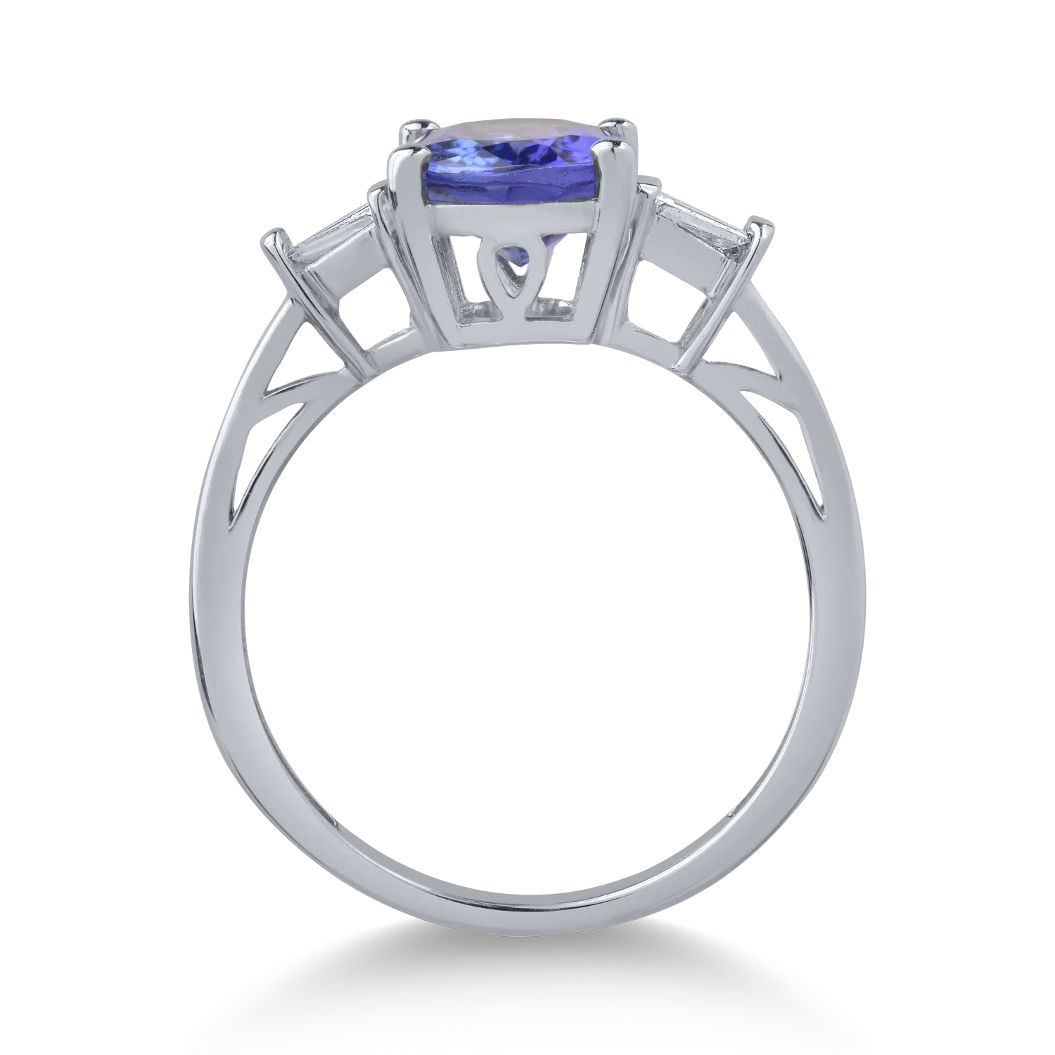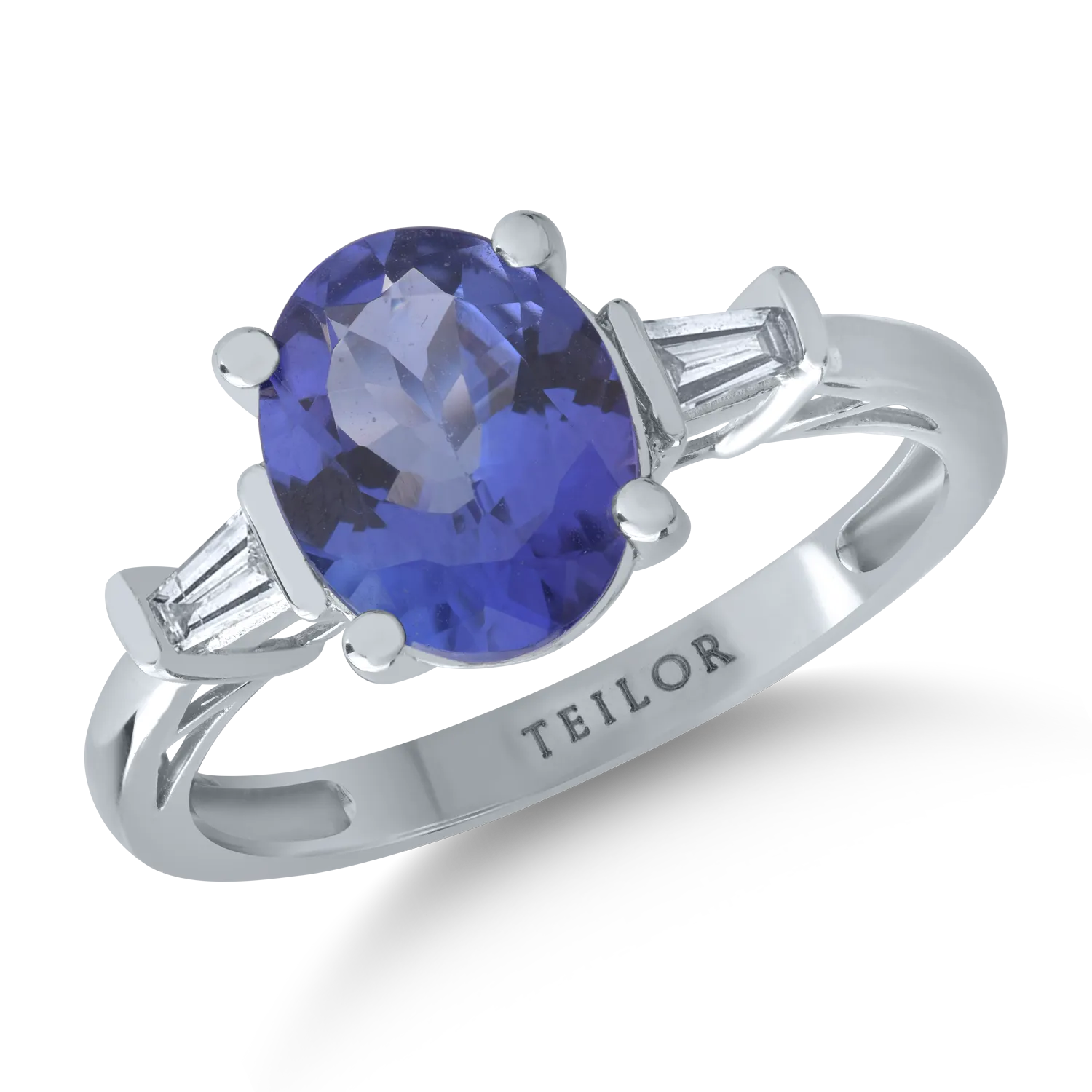 Inel din aur alb cu tanzanit oval de 2.2ct si diamante de 0.1ct