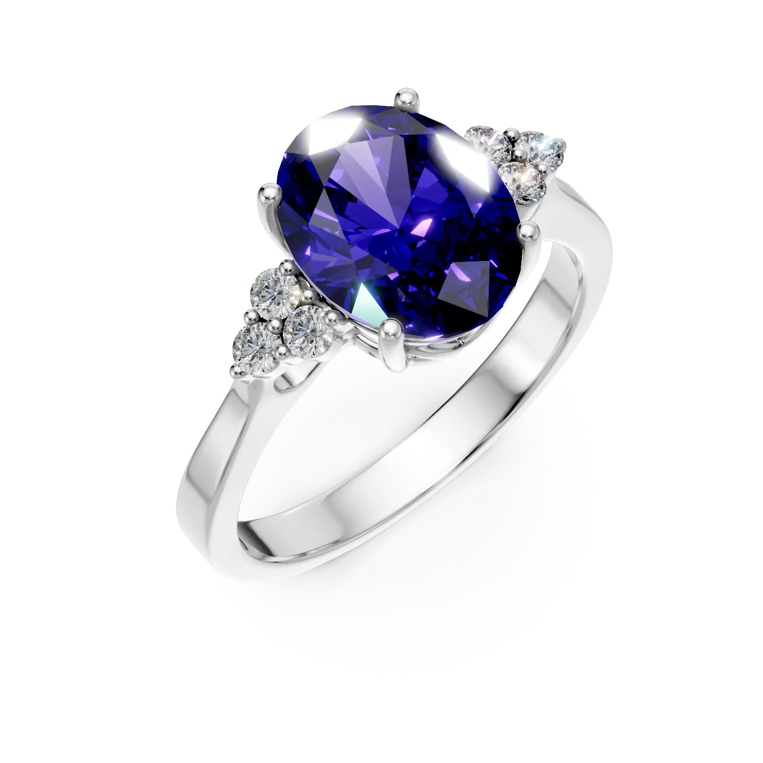 Inel din aur alb cu tanzanit oval de 3.4ct si diamante de 0.1ct