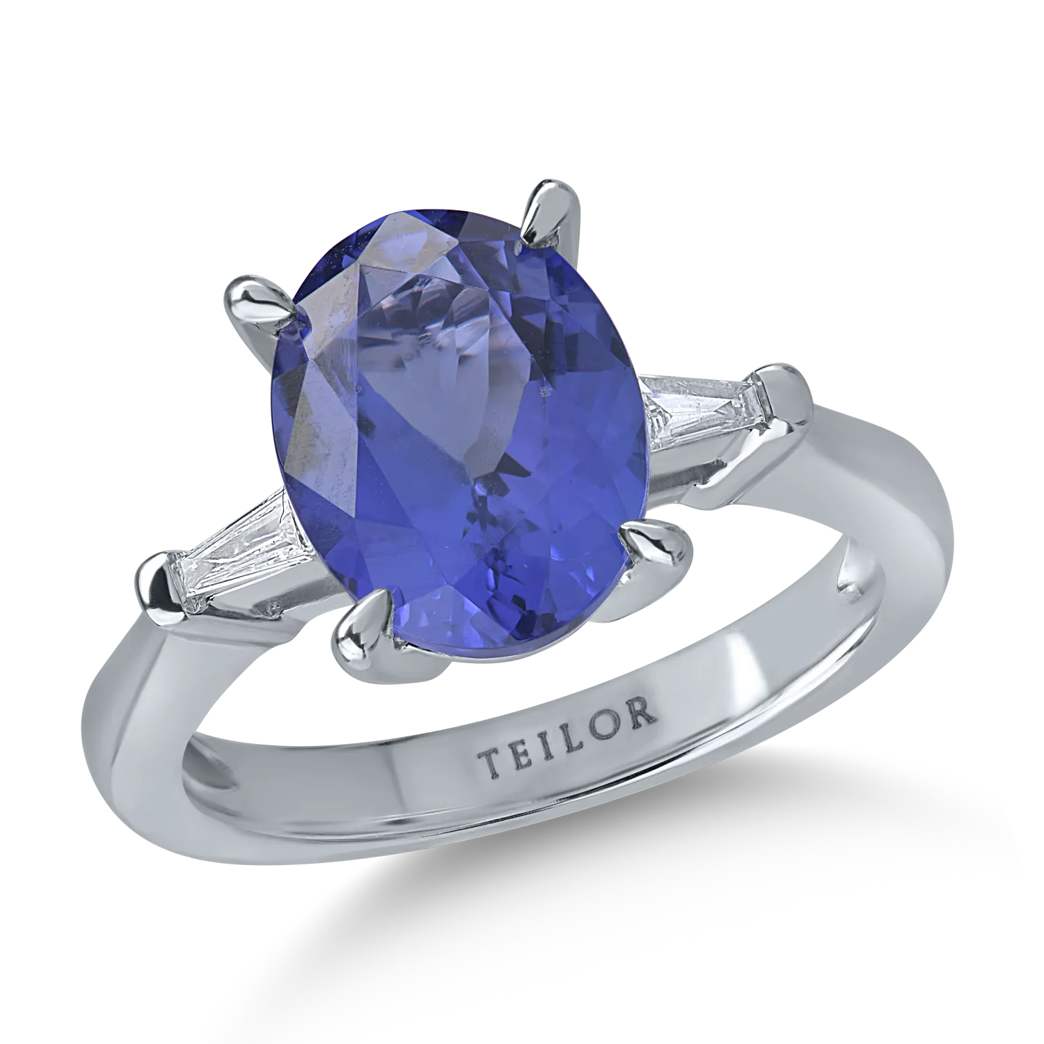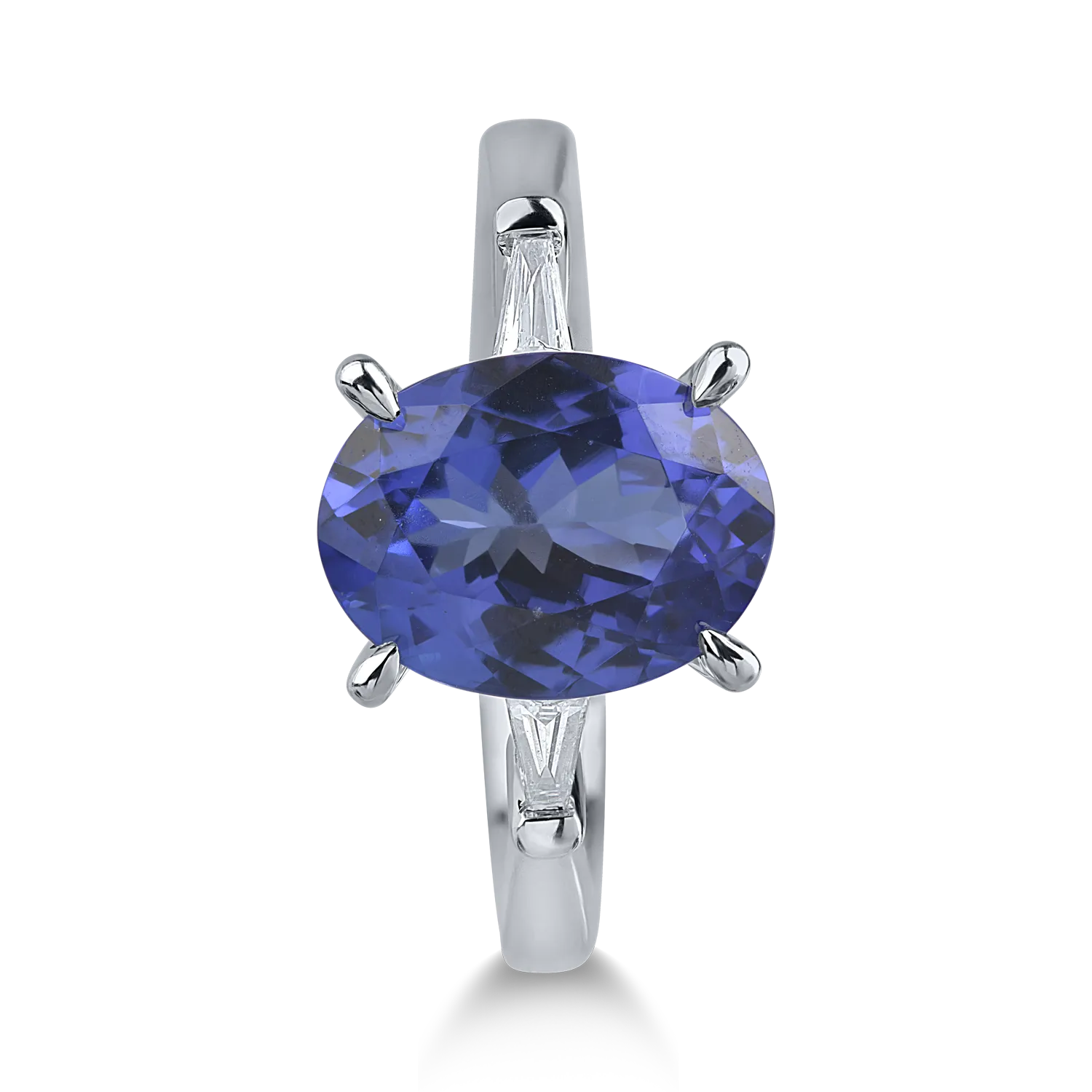 Inel din aur alb cu tanzanit oval de 3.7ct si diamante de 0.1ct