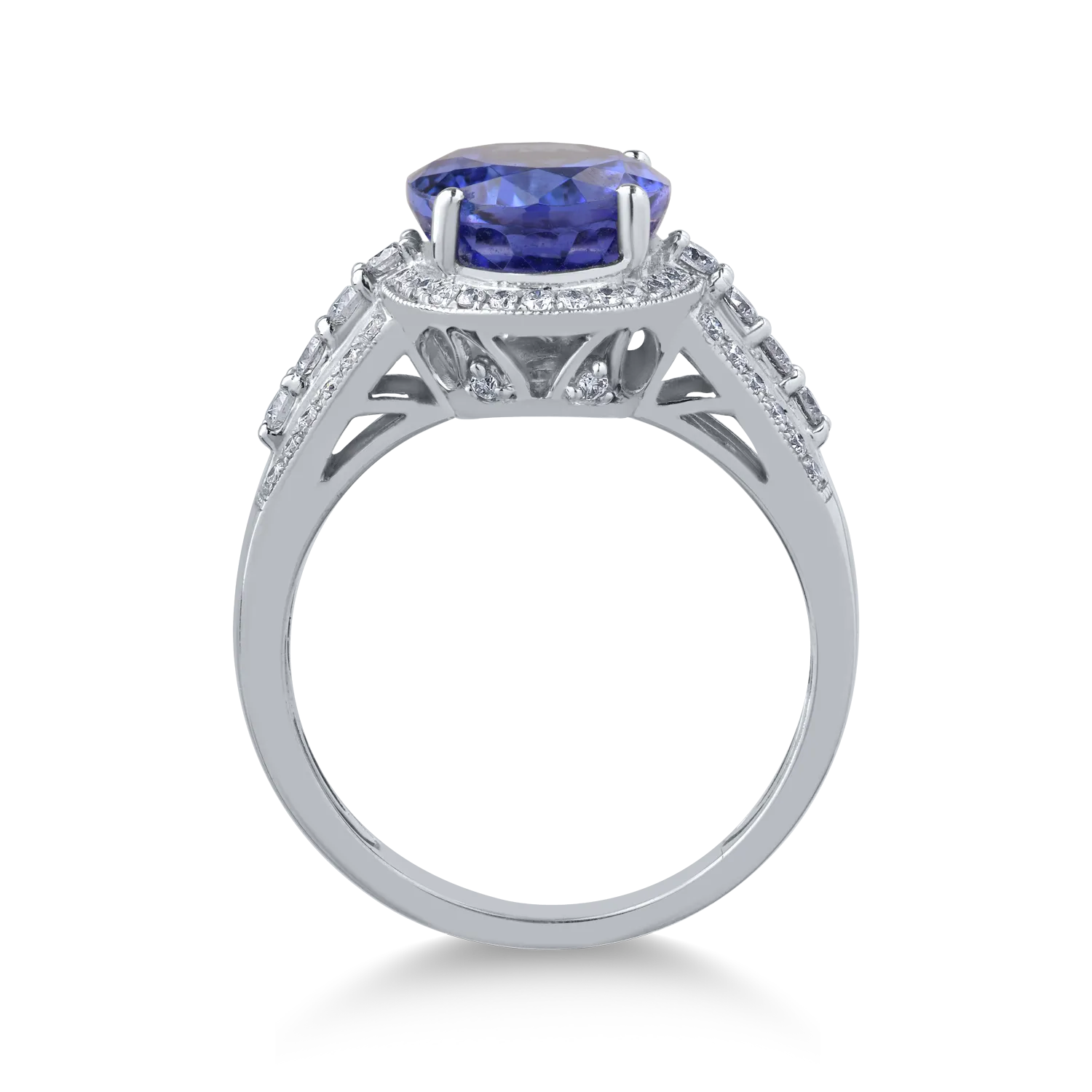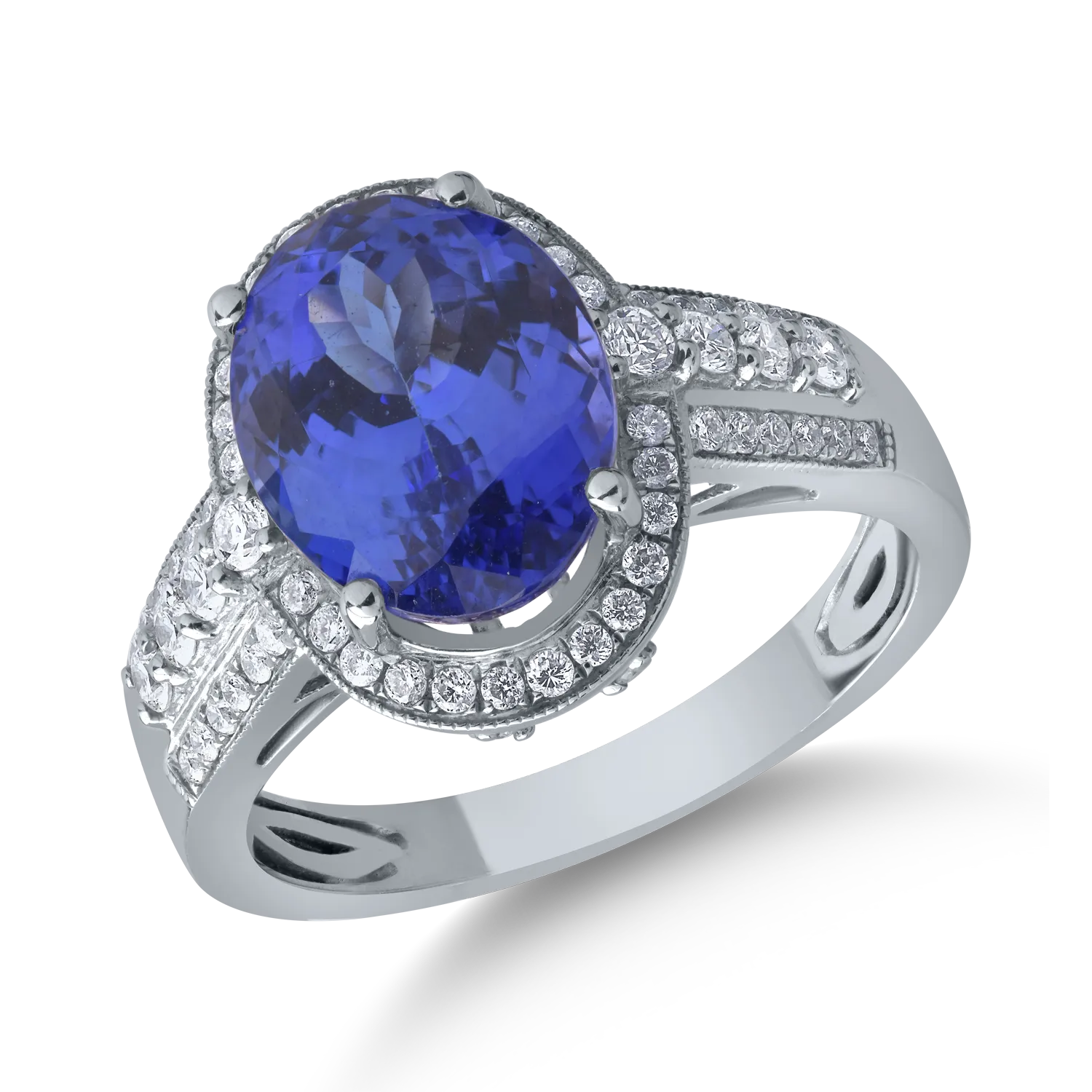 Inel din aur alb cu tanzanit oval de 4.1ct si diamante de 0.4ct