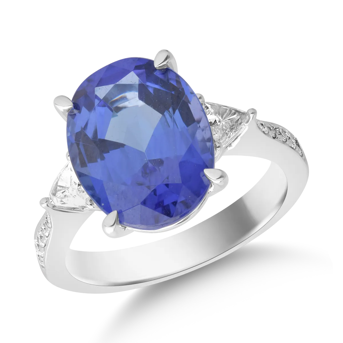 Inel din aur alb cu tanzanit oval de 6.5ct si diamante de 0.4ct