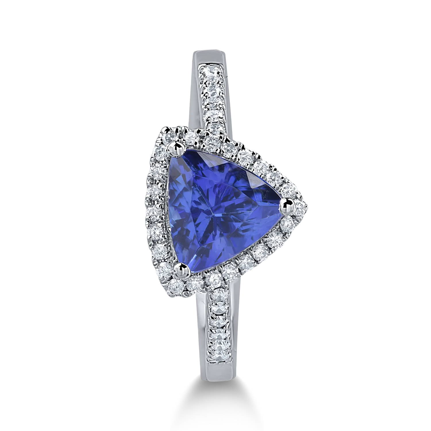 Inel din aur alb cu tanzanit trillion de 1.4ct si diamante de 0.19ct