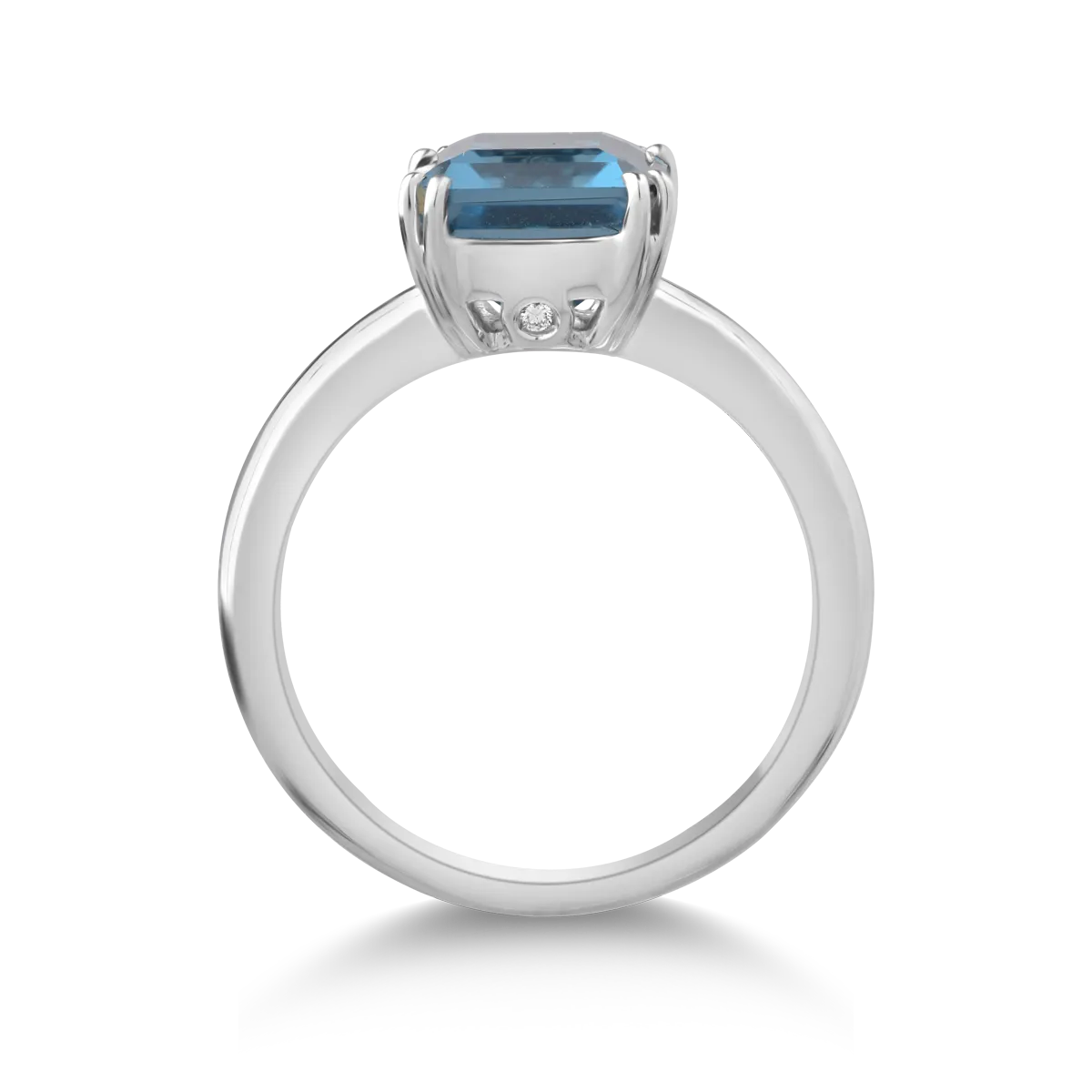 Inel din aur alb cu topaz London blue rectangular de 3ct si diamante de 0.01ct
