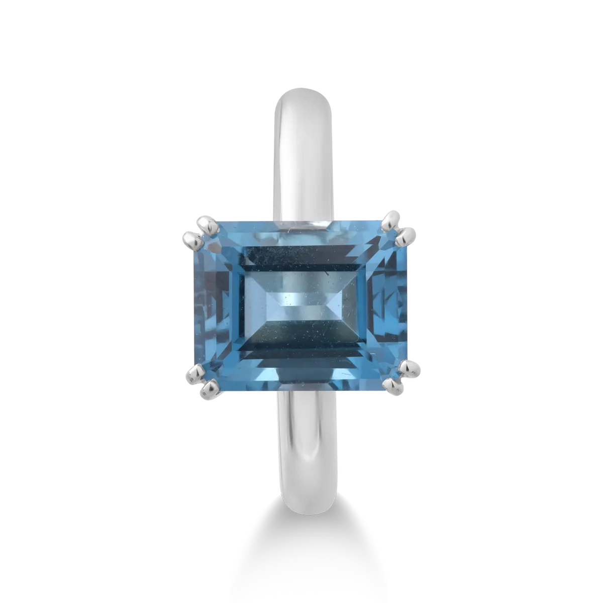 Feminina, romantica, misterioasa, TU. Alege o bijuterie care transmite un aer misterios. Descopera inelul din aur alb cu topaz London Blue cu taietura rectangulara de 3ct si diamante de 0.01ct, o piesa definita de contrastul profund dintre albastrul intens si stralucirea discreta a diamantelor. Taietura rectangulara pune in valoare reflexiile reci si elegante ale topazului, oferind o senzatie de claritate si adancime. Este o bijuterie impunatoare, creata pentru femeile care se exprima prin eleganta si incredere. O combinatie naturala a luxului, o piesa memorabila pentru femeile puternice!