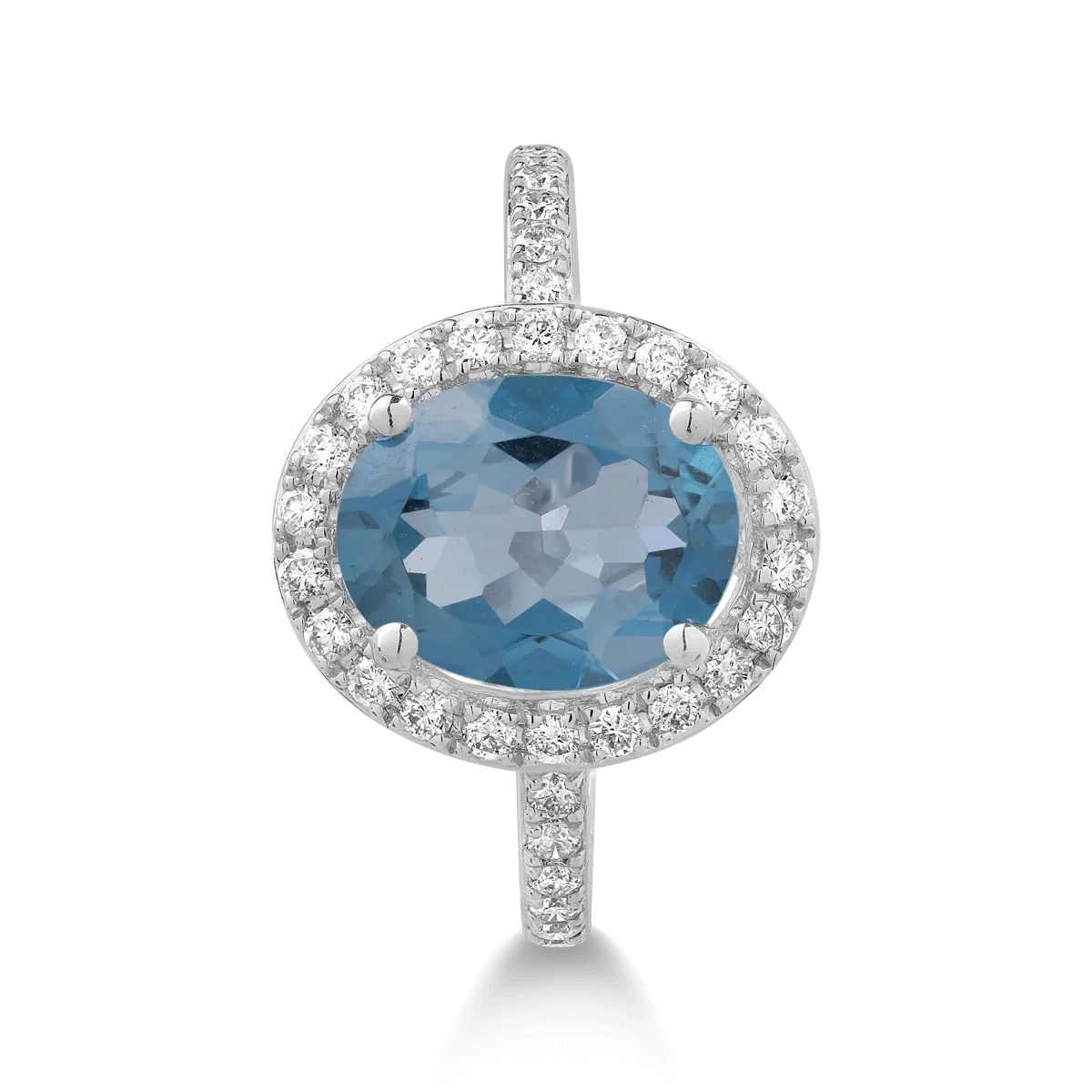 Inel din aur alb cu topaz oval de 2.2ct si diamante de 0.2ct
