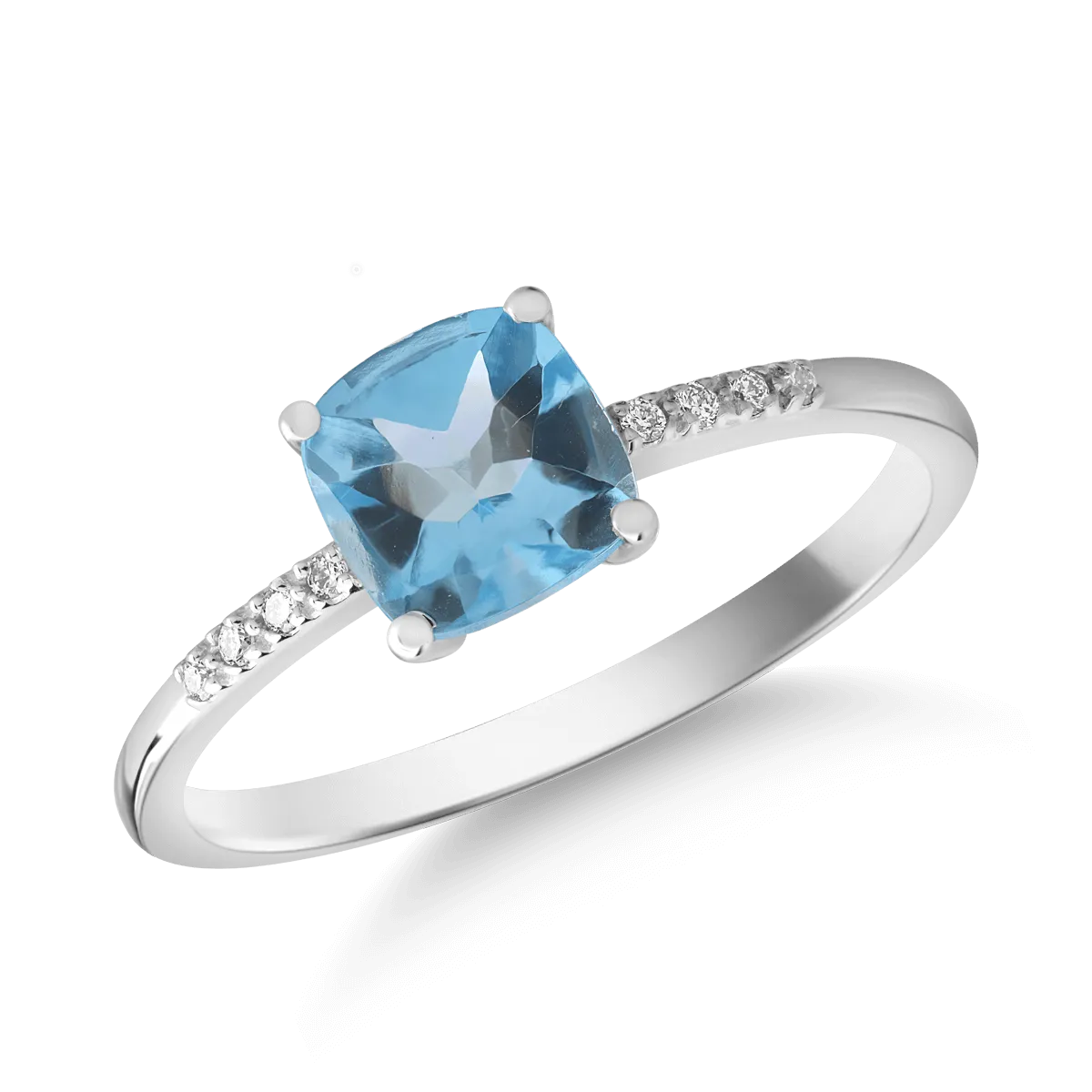 Inel din aur alb cu topaz swiss blue de 1.218ct si diamante de 0.023ct