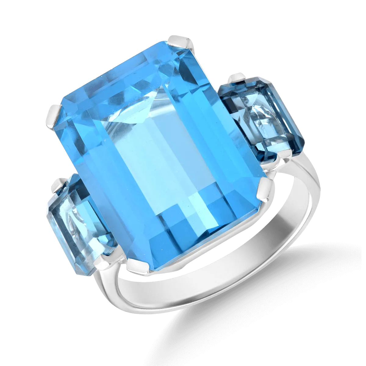 Inel din aur alb cu topaze albastre octogonale de 18.1ct
