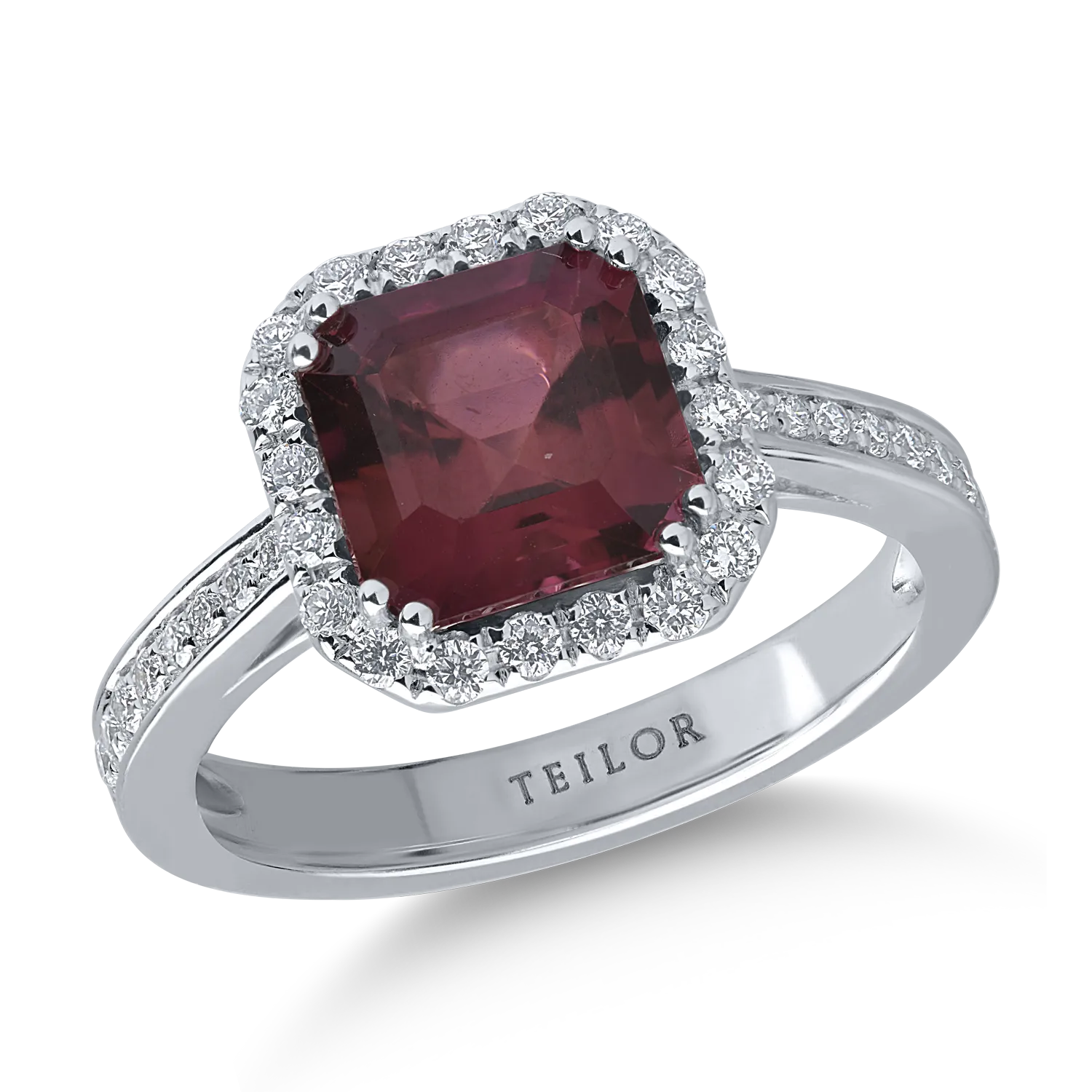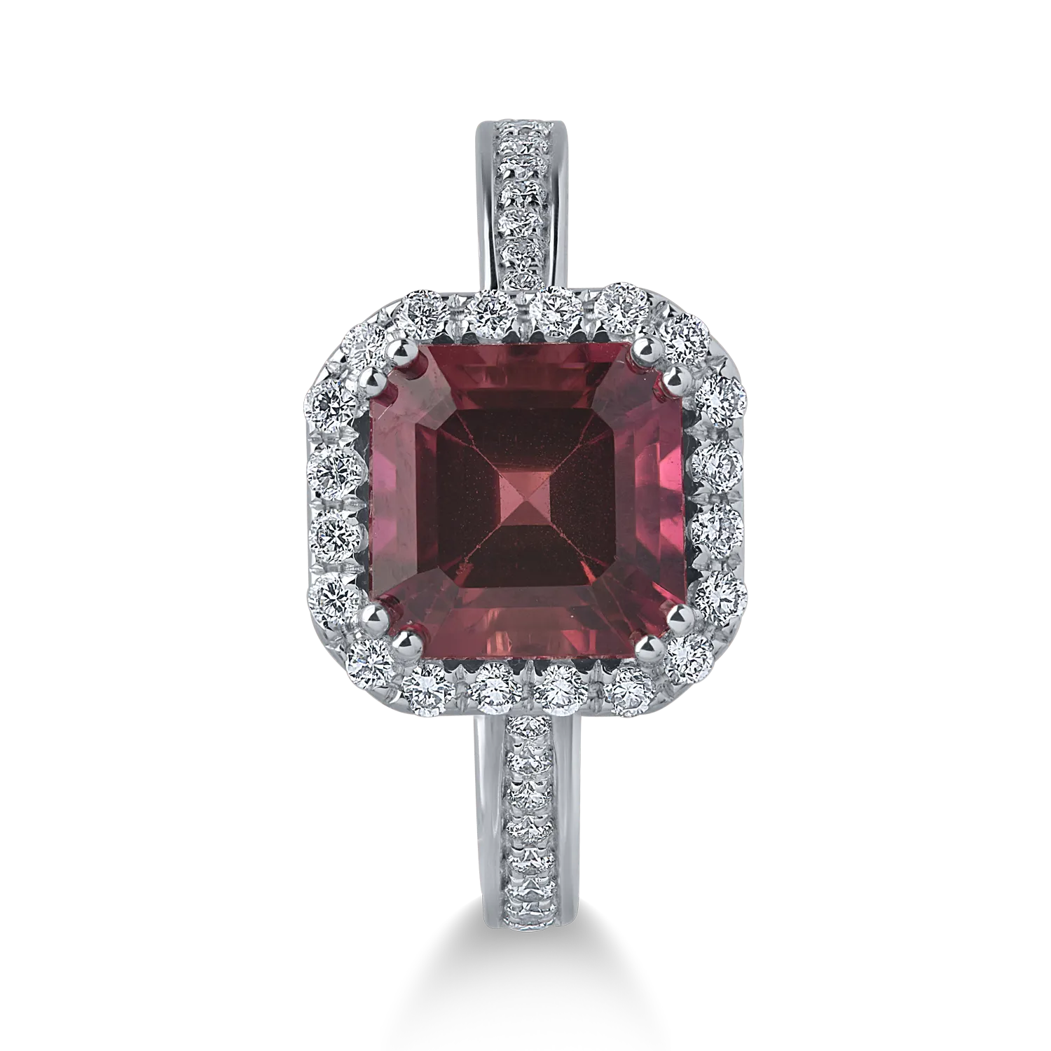 Inel din aur alb cu turmalina roz de 2.28ct si diamante de 0.34ct