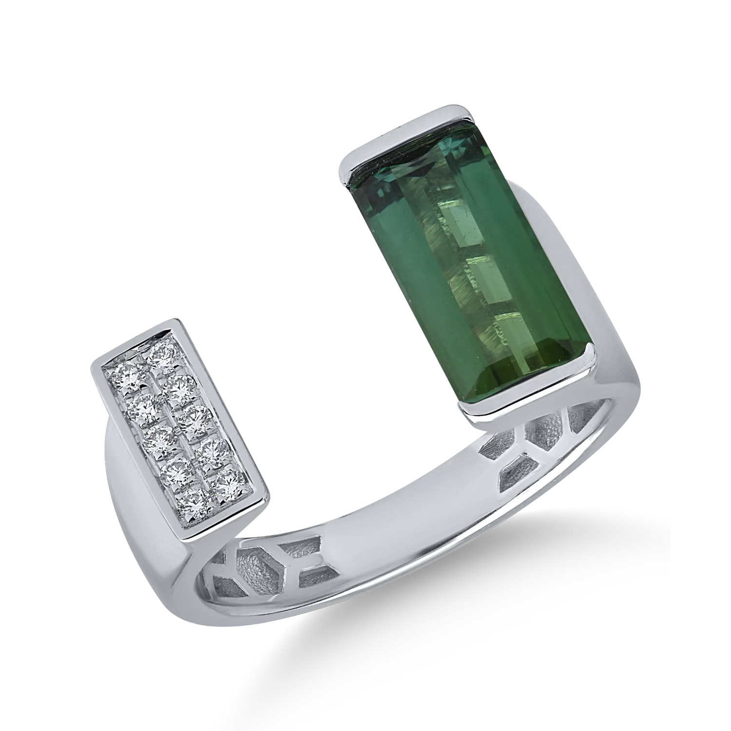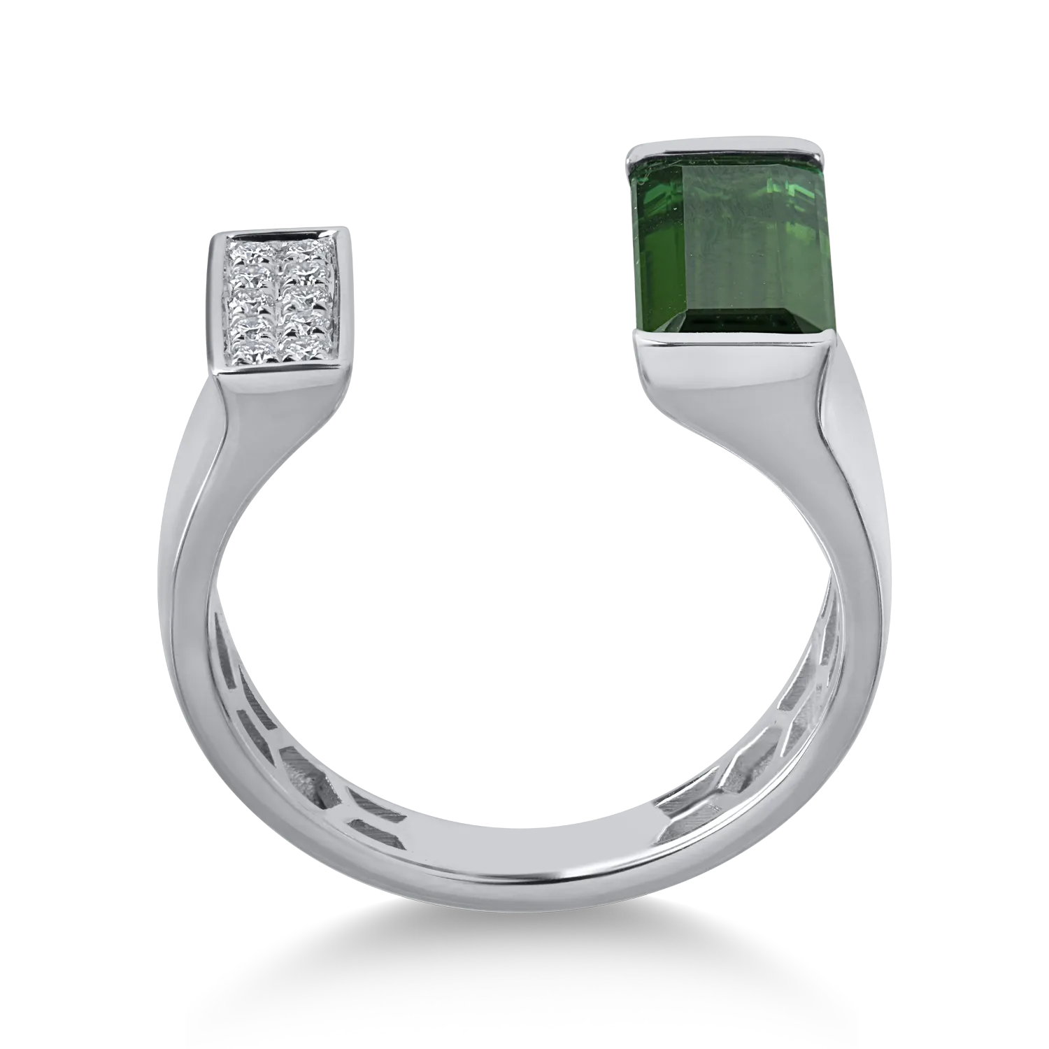 Inel din aur alb cu turmalina verde emerald de 1.59ct si diamante de 0.08ct