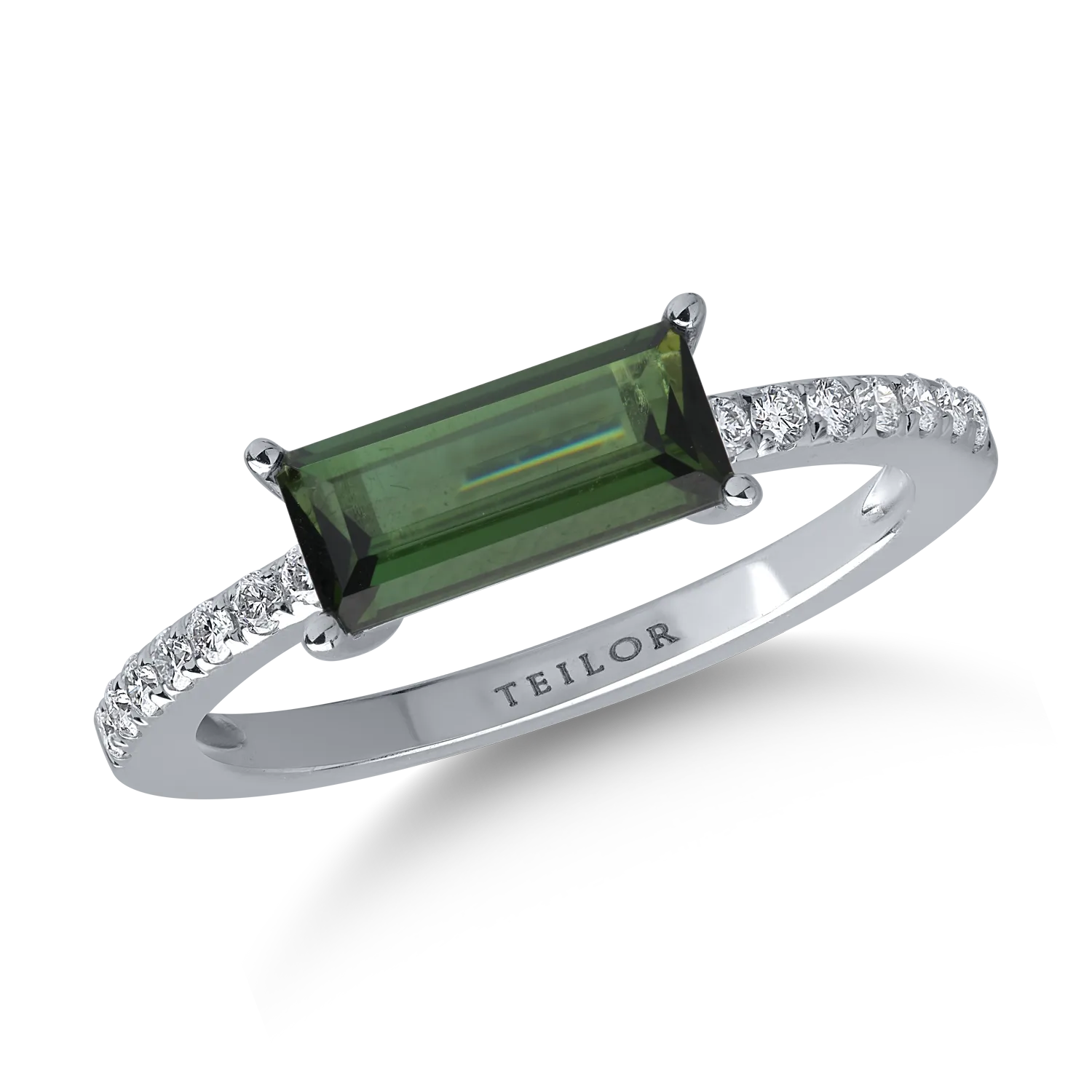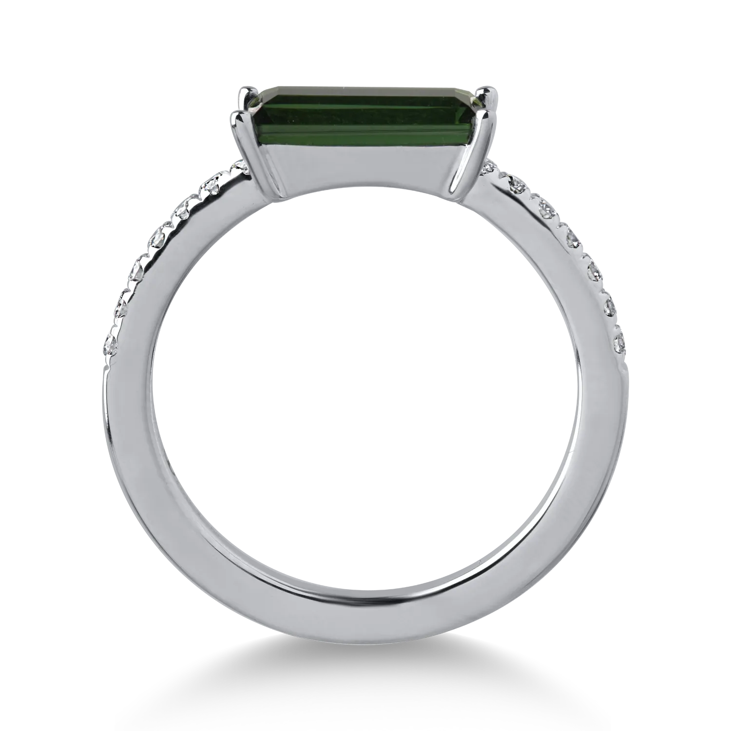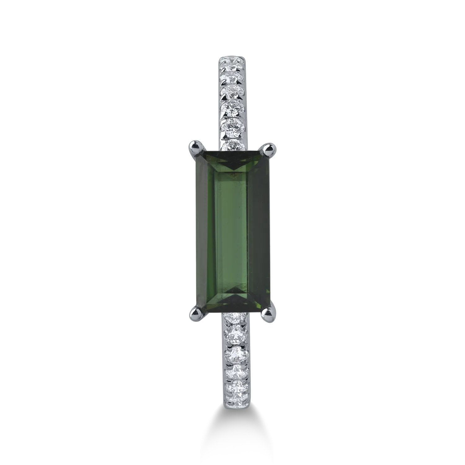 Inel din aur alb cu turmalina verde emerald de 1.7ct si diamante de 0.08ct