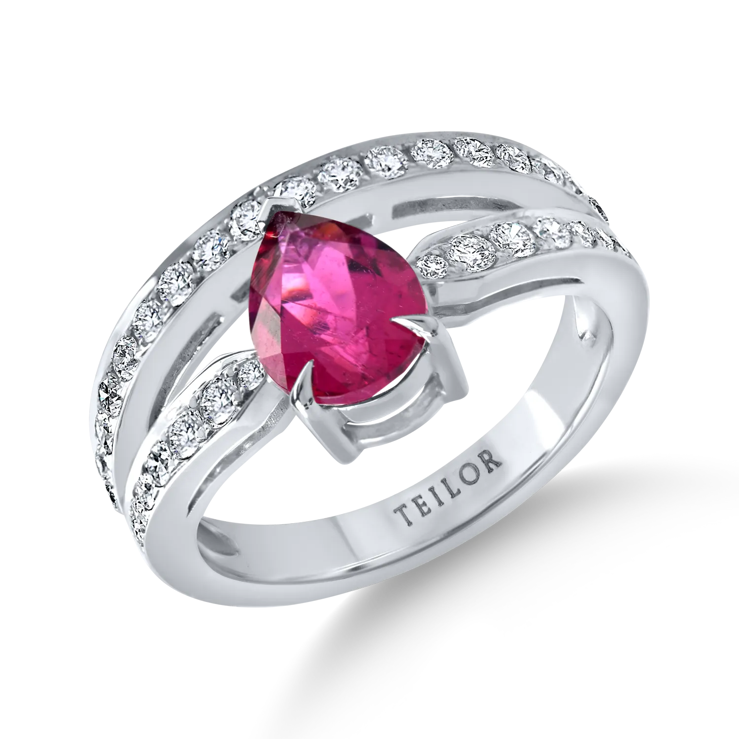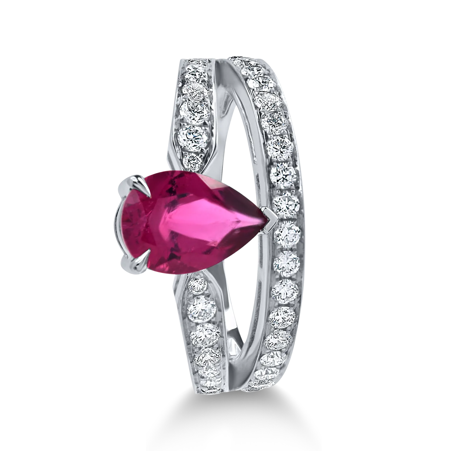 Inel din aur alb cu un rubelit pear si diamante de 1.8ct