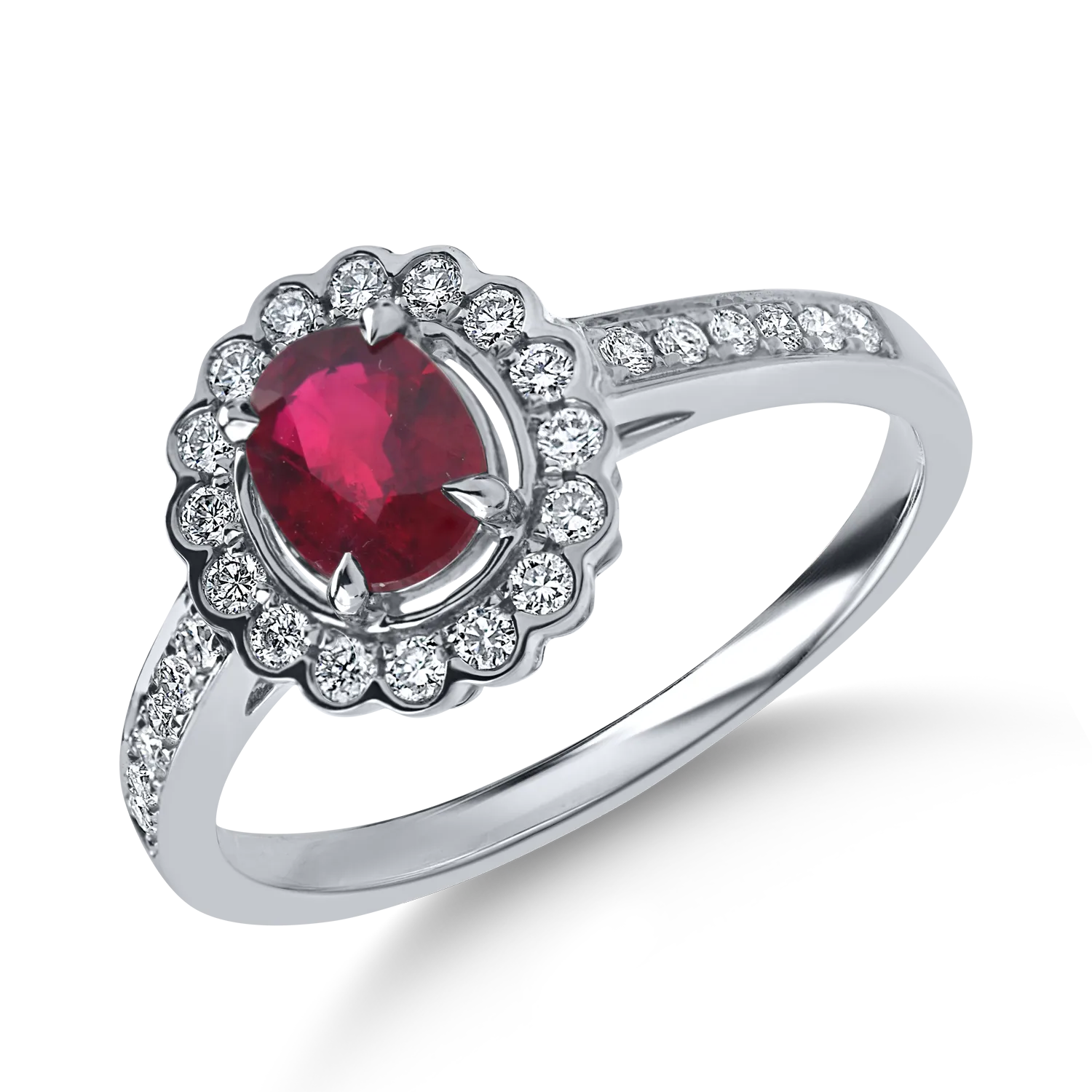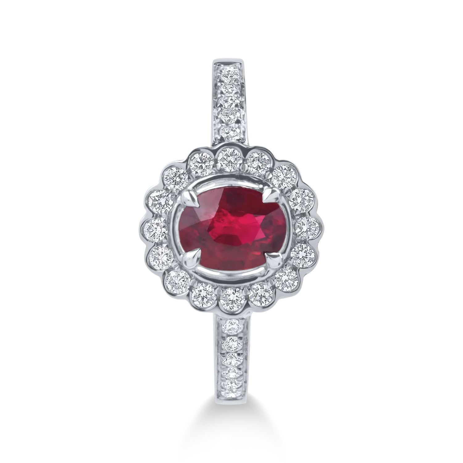 Inel din aur alb cu un rubin oval si diamante de 1ct