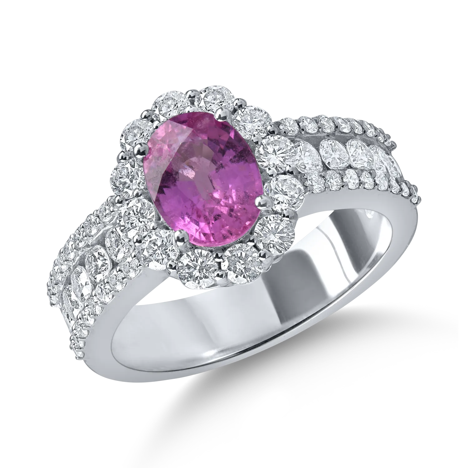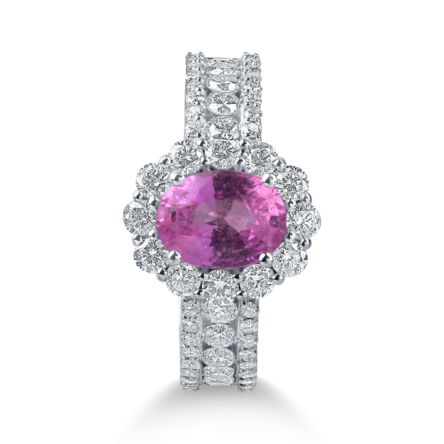 Inel din aur alb cu un safir roz oval de 1.69ct si diamante de 1.2ct