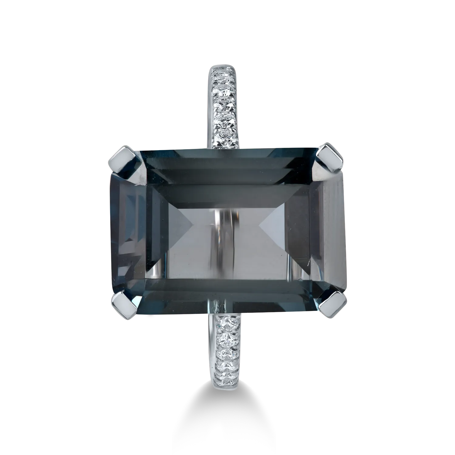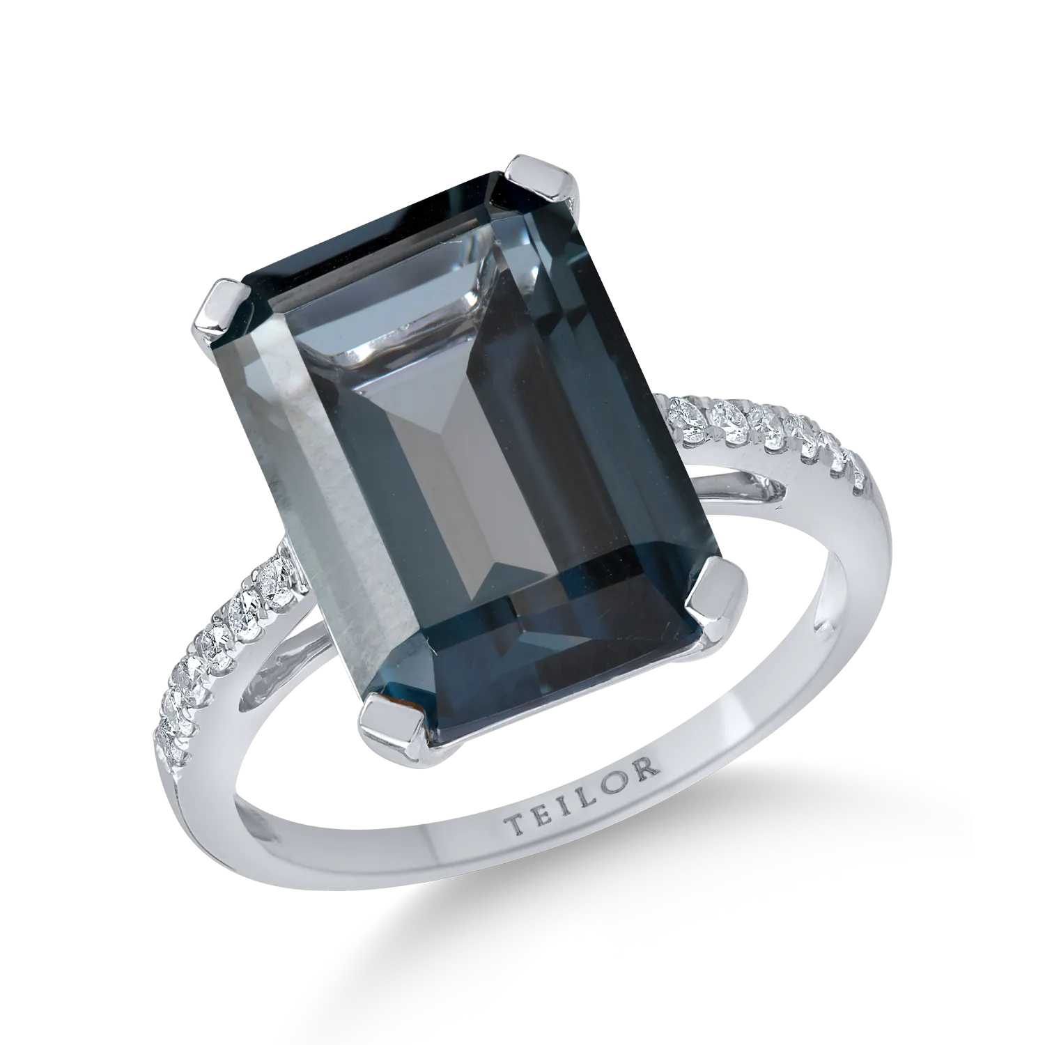 Inel din aur alb cu un topaz London blue octogonal de 7.9ct si diamante de 0.1ct