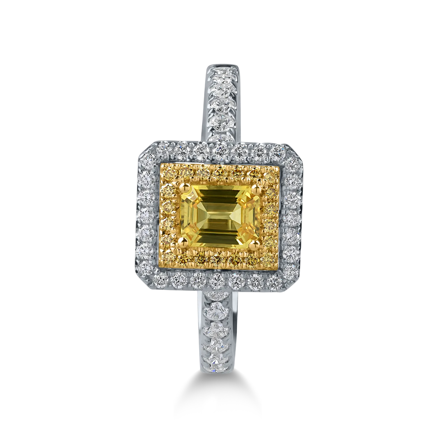 Inel din aur alb-galben cu diamante de 0.4ct si safire galbene octogonale de 0.5ct