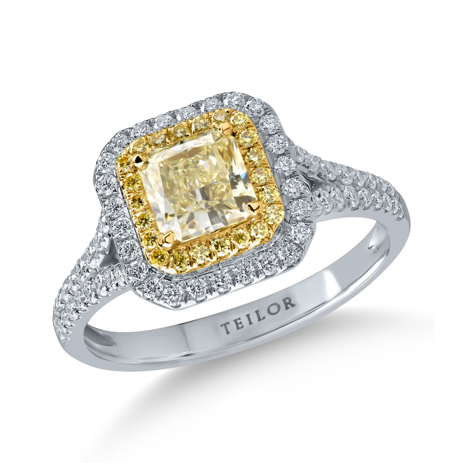 Stilul inspira rafinament si feminitate. Prin silueta originala si designul deosebit, inelul din aur alb-galben cu diamante de 1.2ct iti va ramane mult timp printre favorite. Cucereste inimi, exploreaza universul TEILOR.
