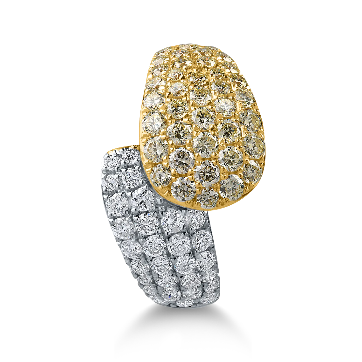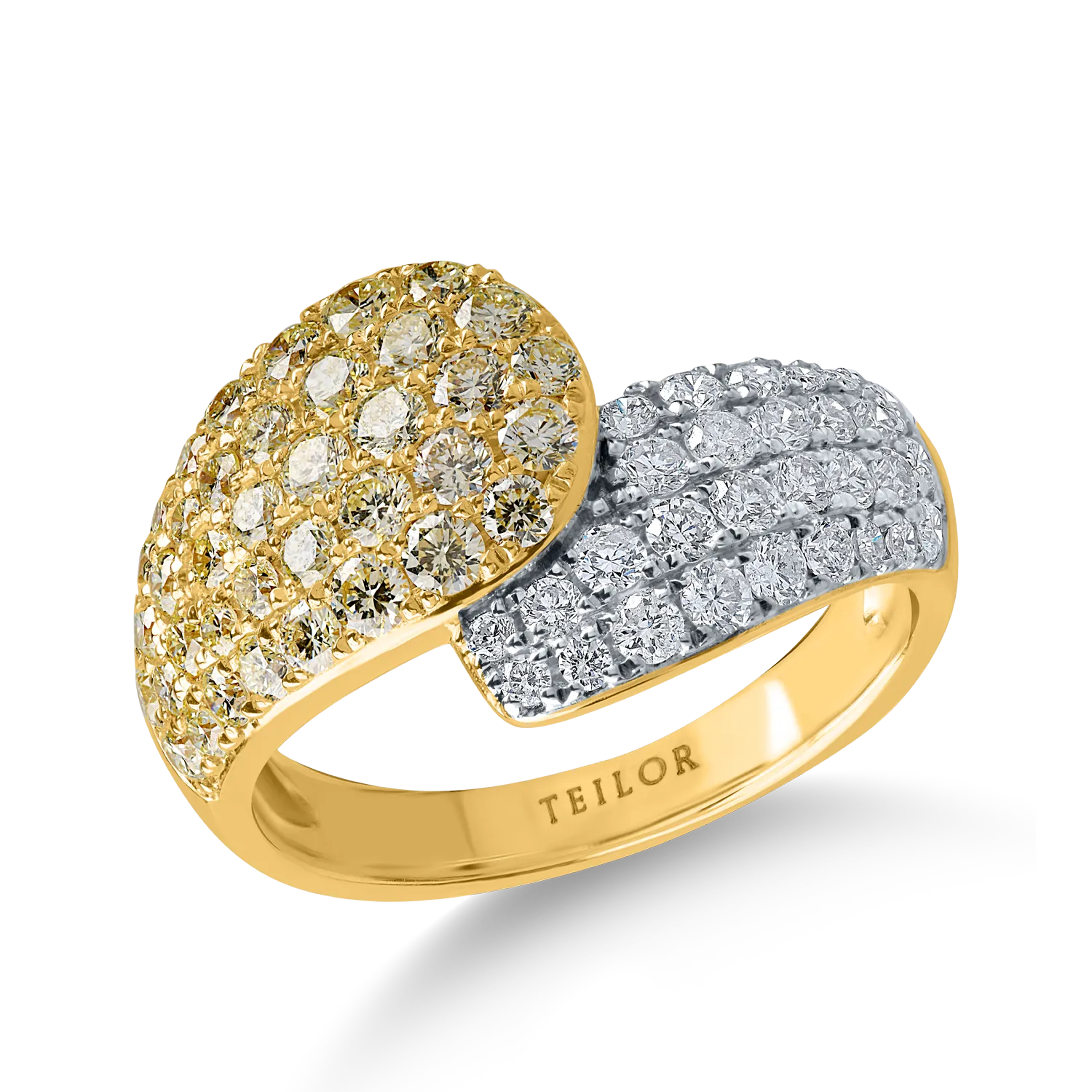 Inel din aur alb-galben cu diamante galbene de 1ct si diamante incolore de 0.5ct