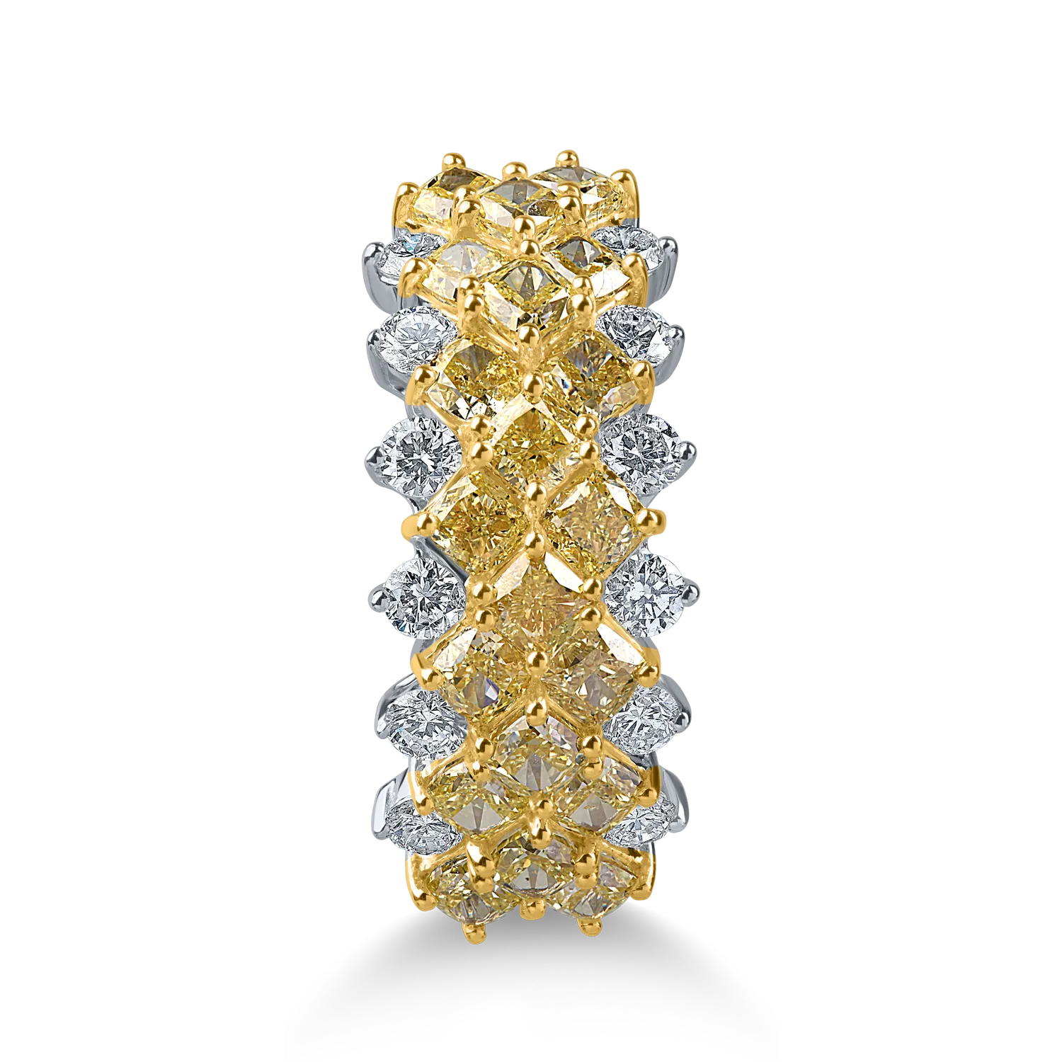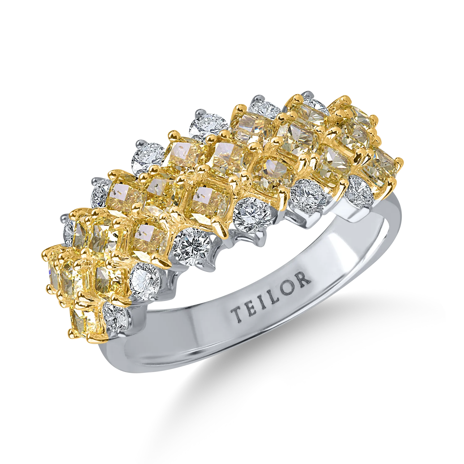 Inel din aur alb-galben cu diamante galbene si incolore de 2.9ct