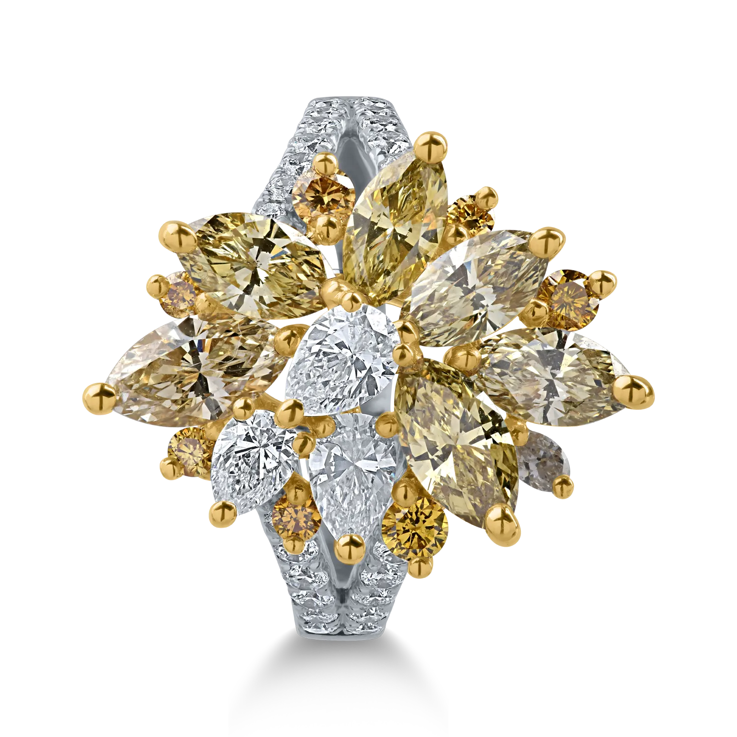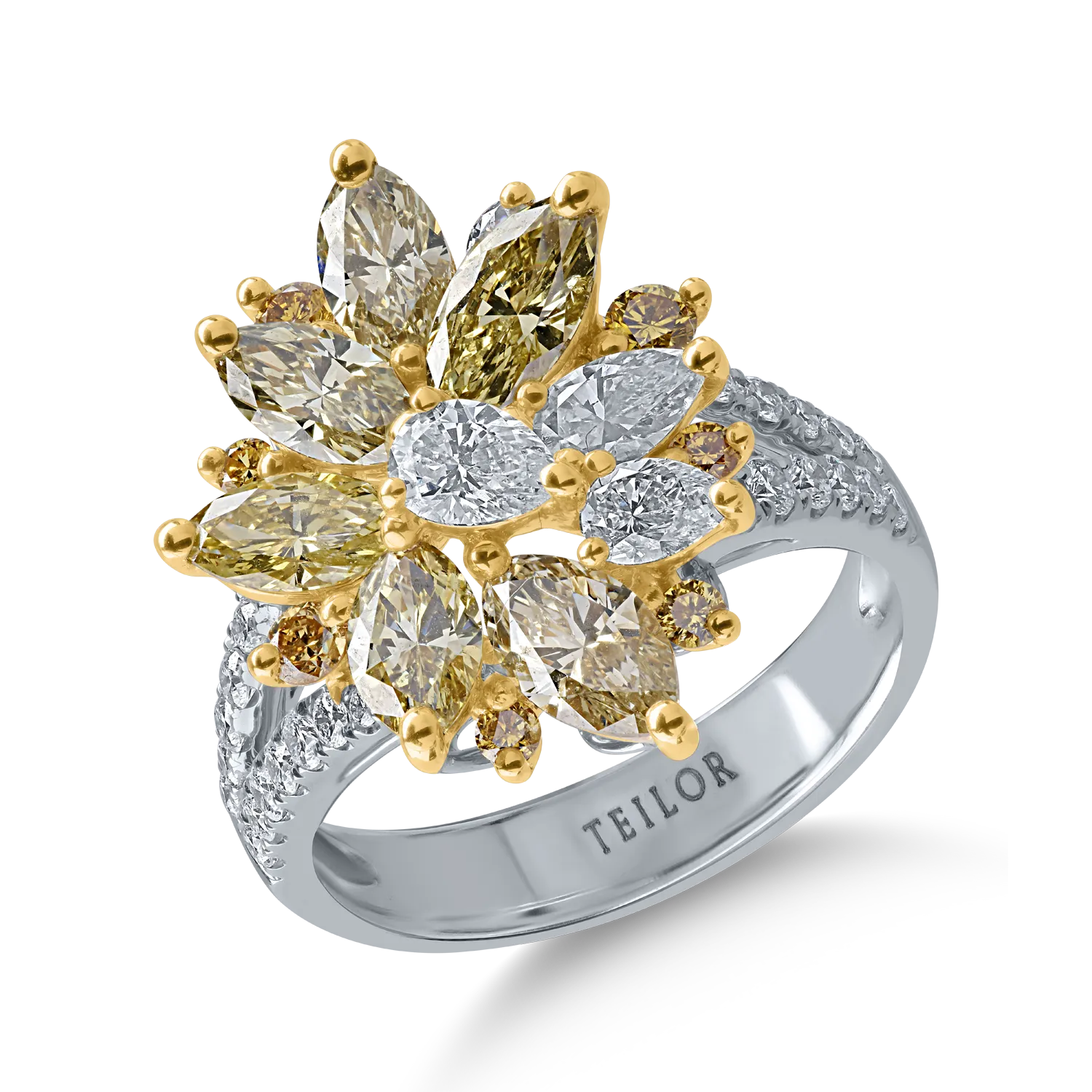 Inel din aur alb-galben cu diamante marquise, pear si rotunde de 3.12ct
