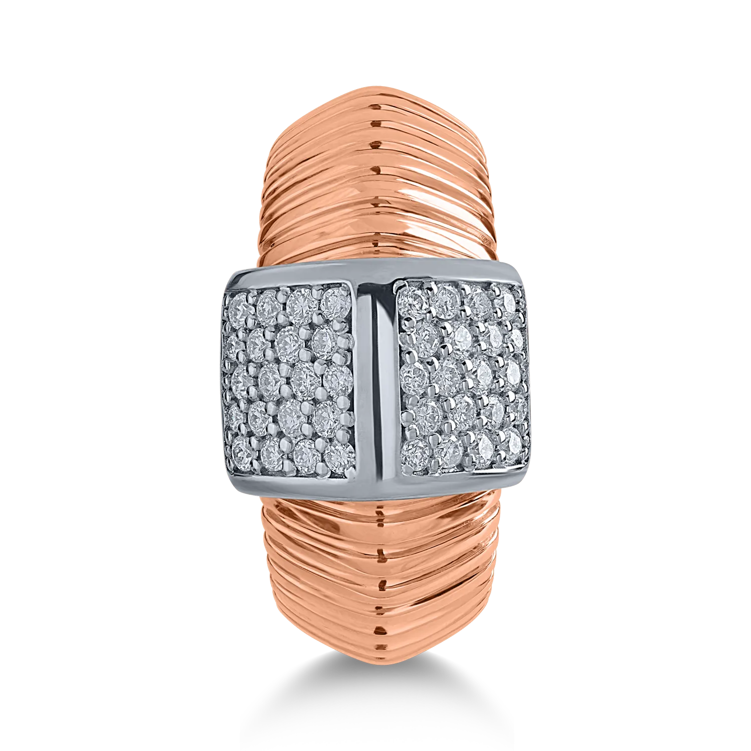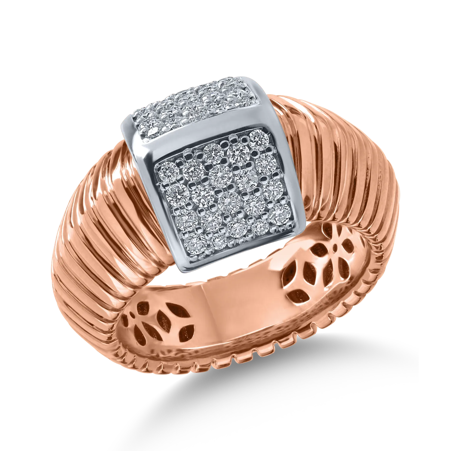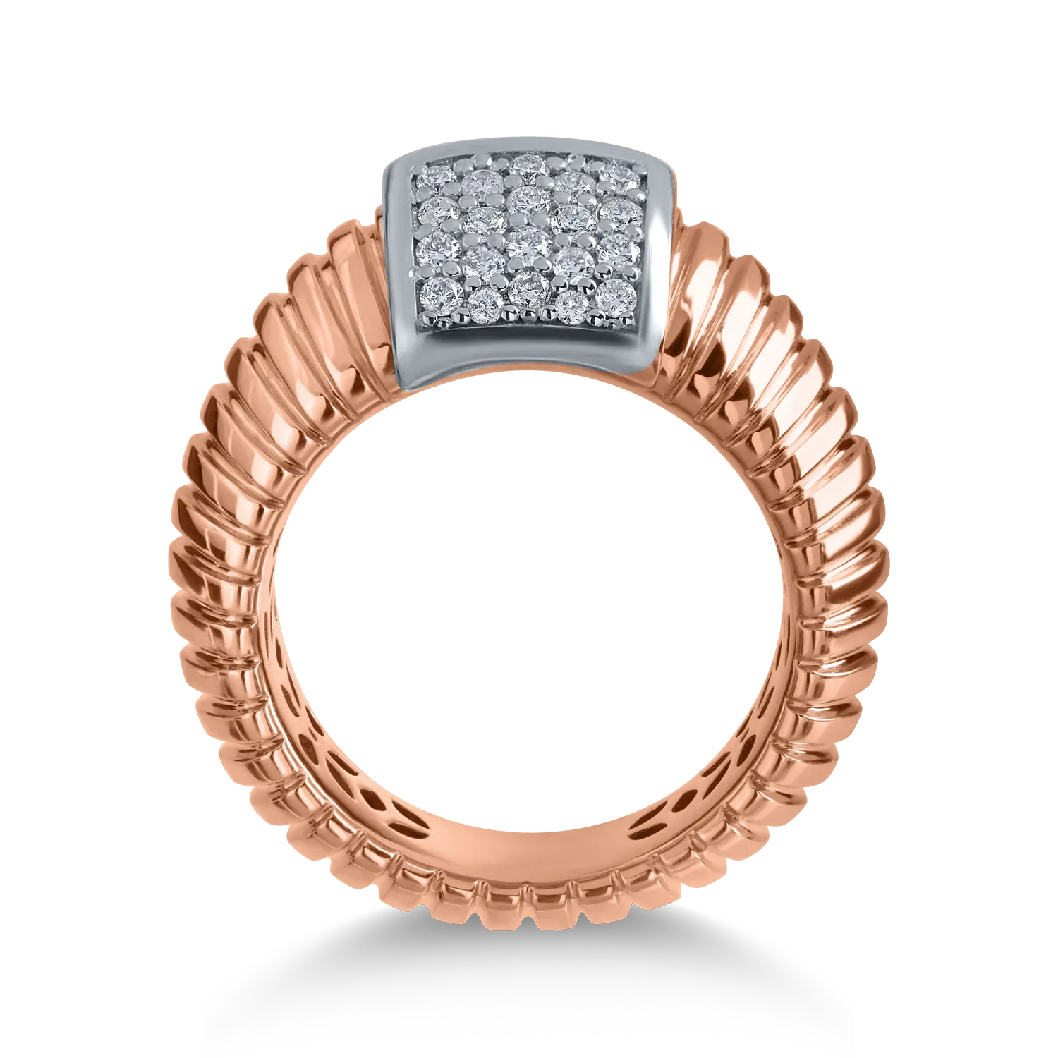 Feminitate si atitudine. Descopera acest inel din aur alb-roz cu diamante de 0.44ct in care vei regasi elementele unui design rafinat si modern. TEILOR este sinonim cu piesele atemporale, realizate cu precizie desavarsita.