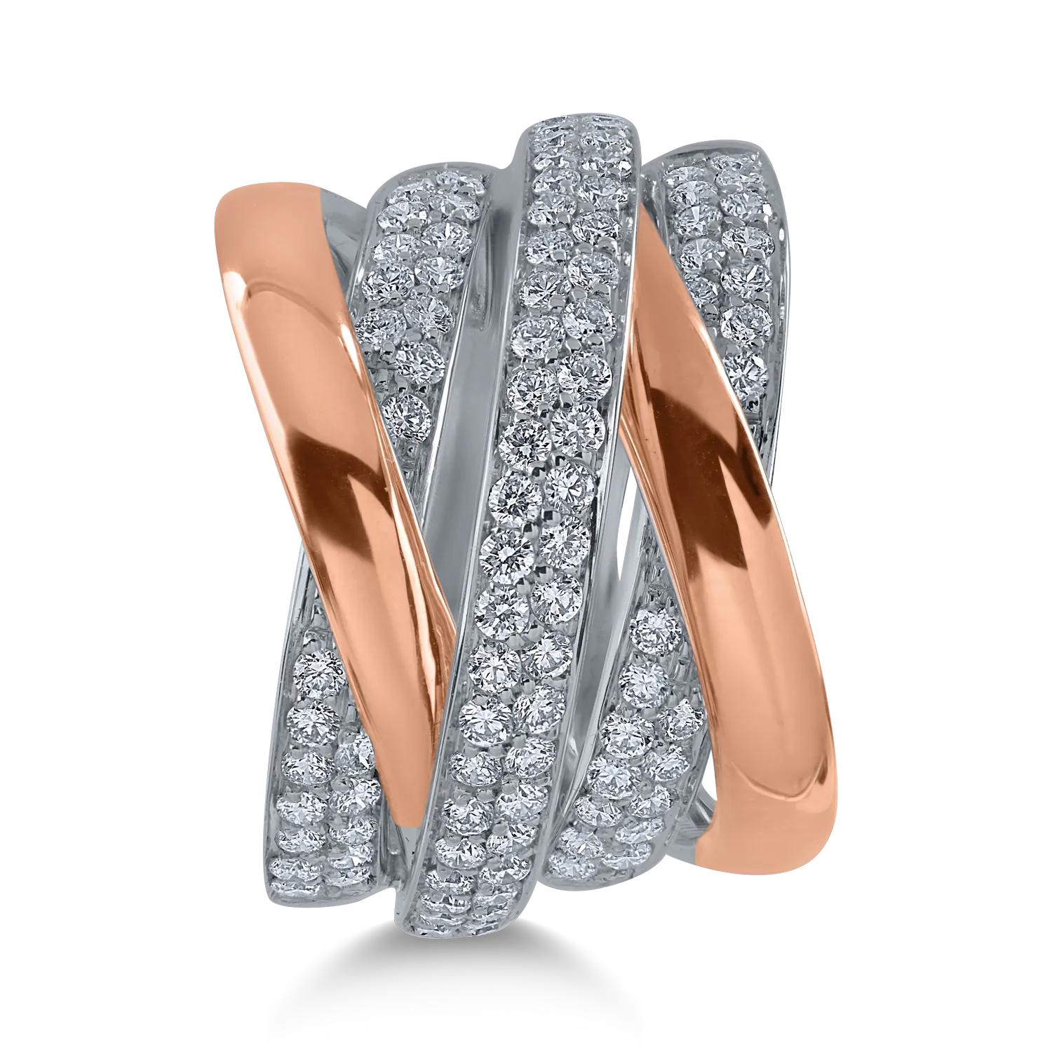 Poarta bijuteria care iti va contura look-ul. Descopera un inel din aur alb-roz cu diamante de 1.1ct care se adapteaza atat tinutelor de zi cu zi, cat si celor mai elegante. O piesa care va sublinia unicitatea outfit-urilor tale.