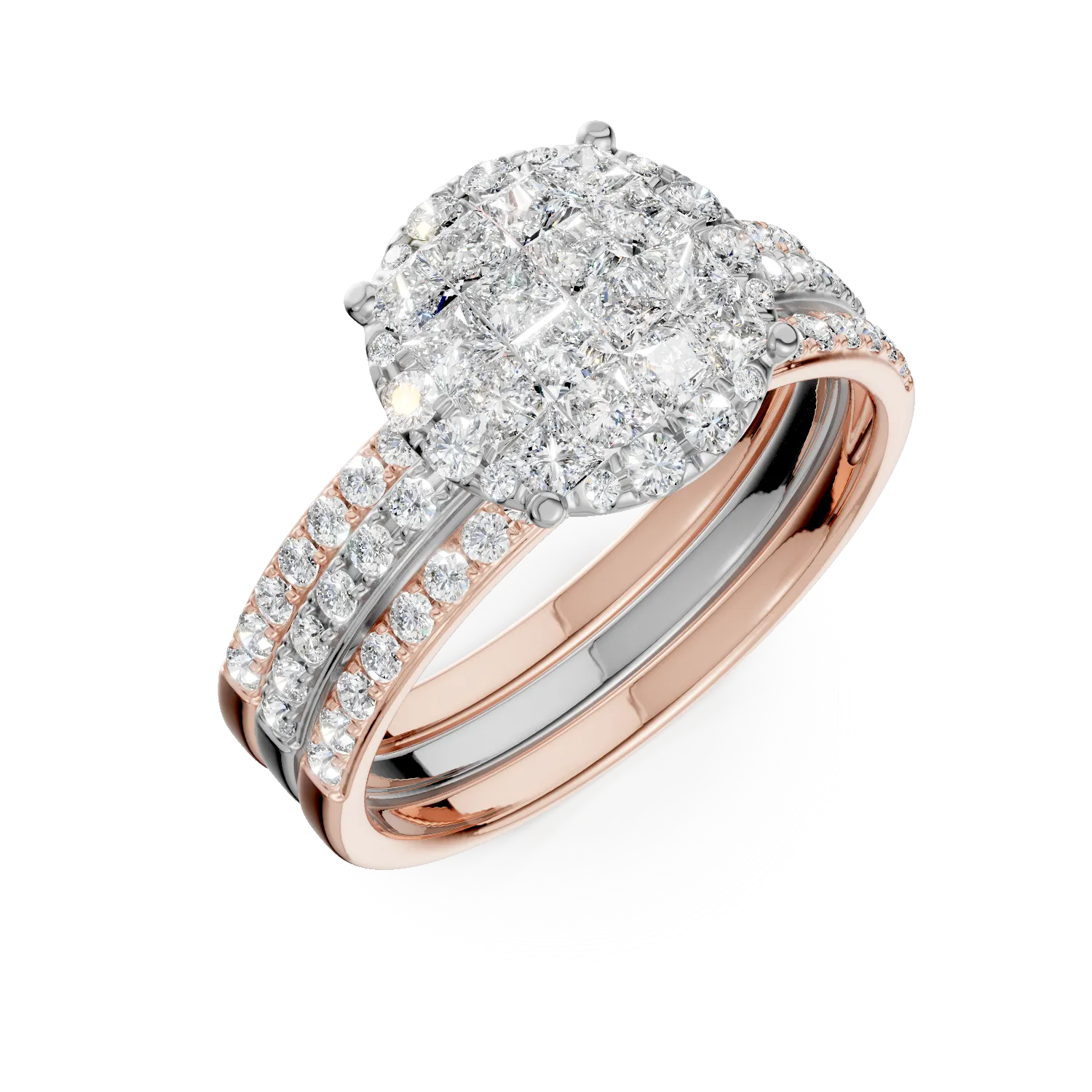 Inel din aur alb-roz cu diamante princess si rotunde de 1ct