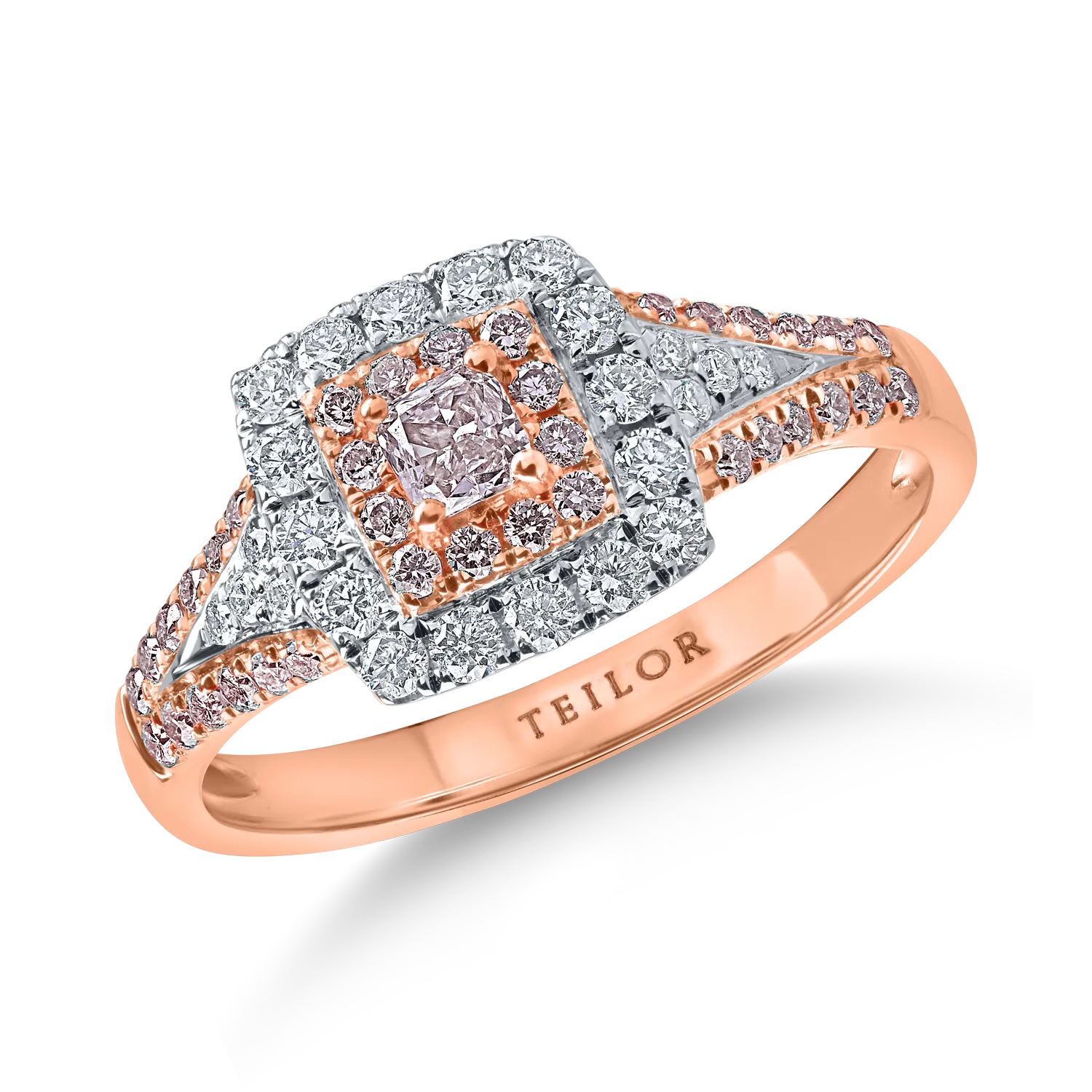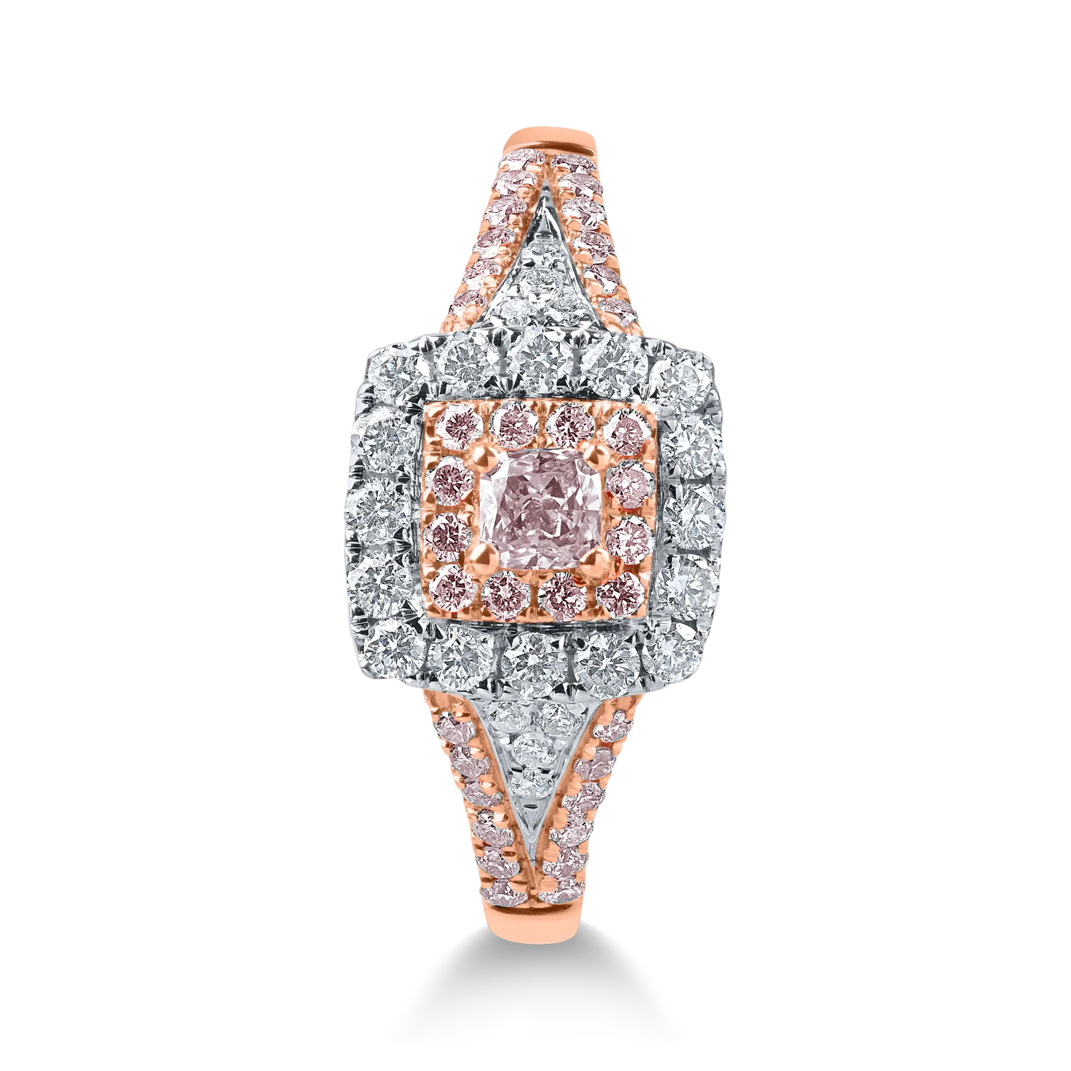Inel din aur alb-roz cu diamante roz cushion si rotunde si diamante incolore de 0.69ct
