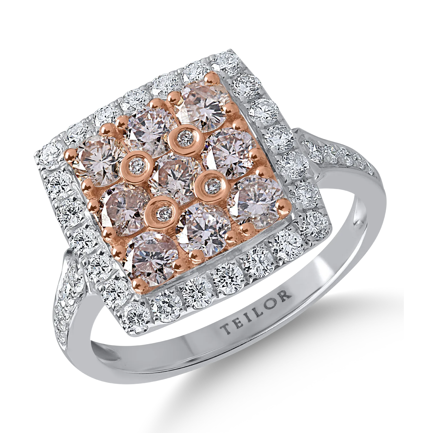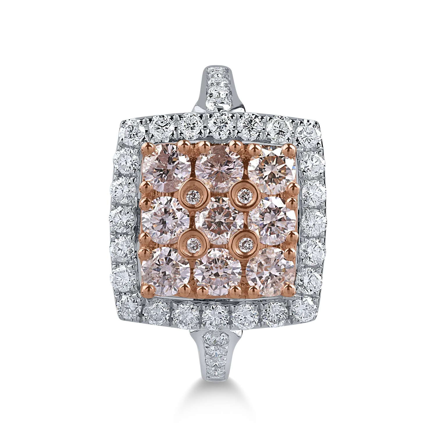 Inel din aur alb-roz cu diamante roz de 1.01ct si diamante transparente de 0.57ct