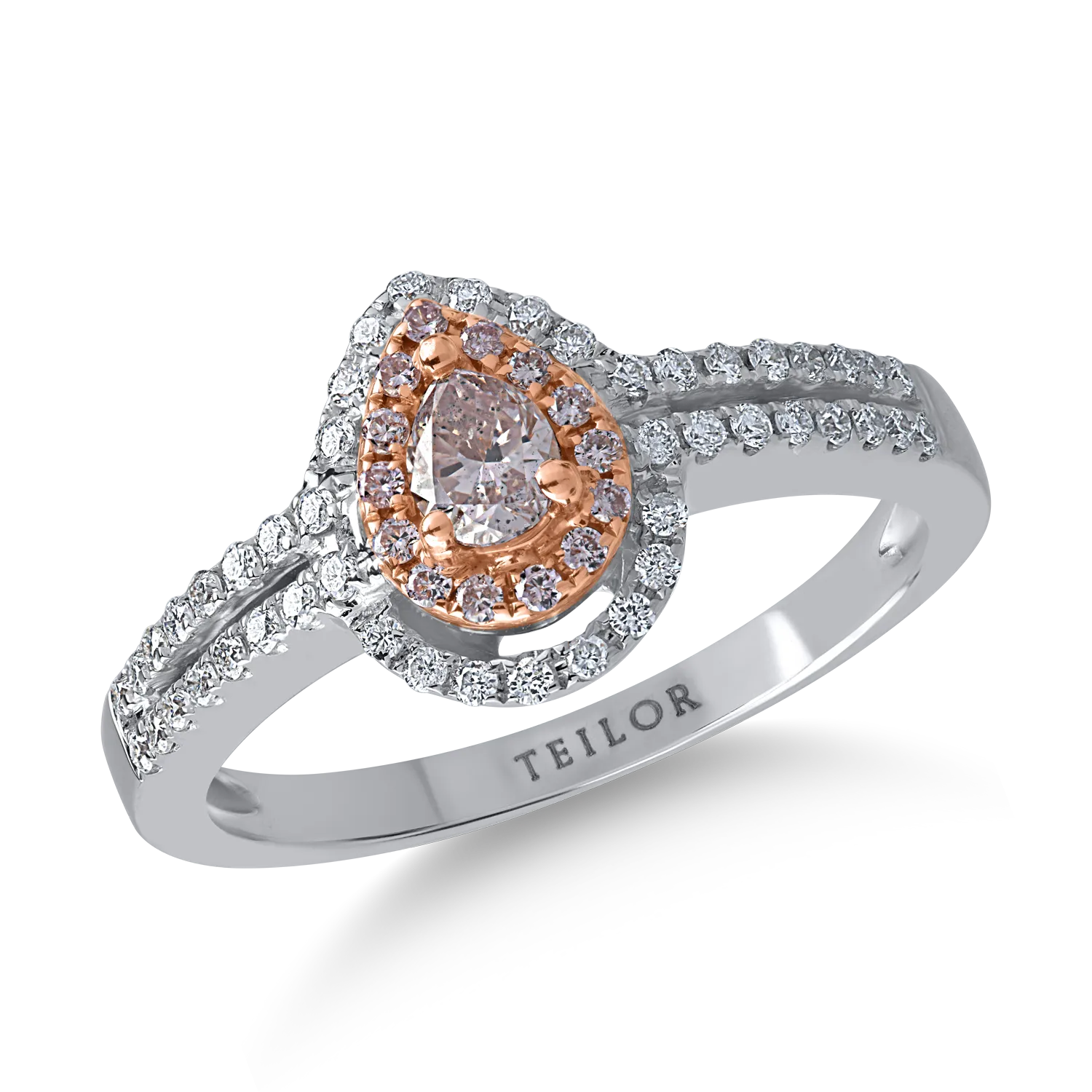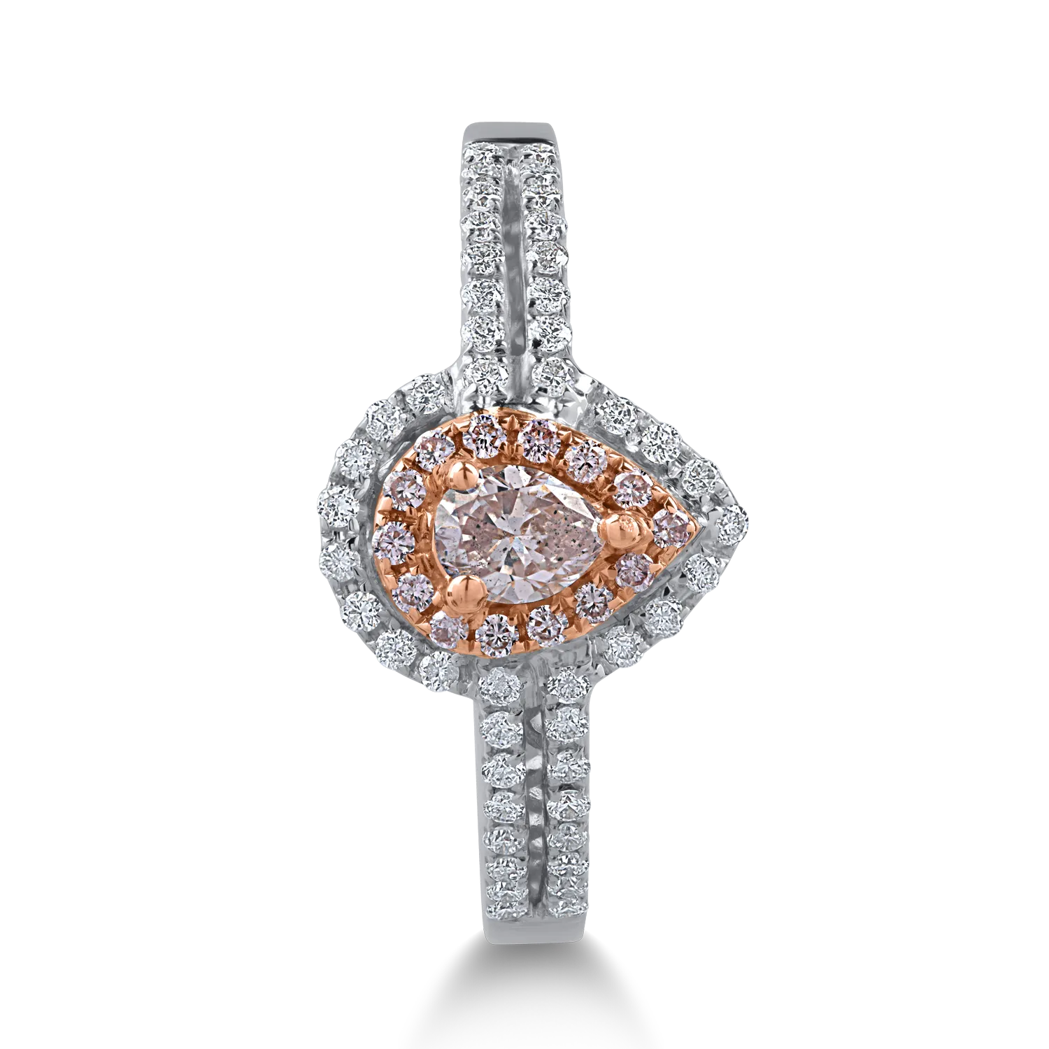 Inel din aur alb-roz cu diamante roz pear si rotunde de 0.29ct si diamante transparente de 0.24ct