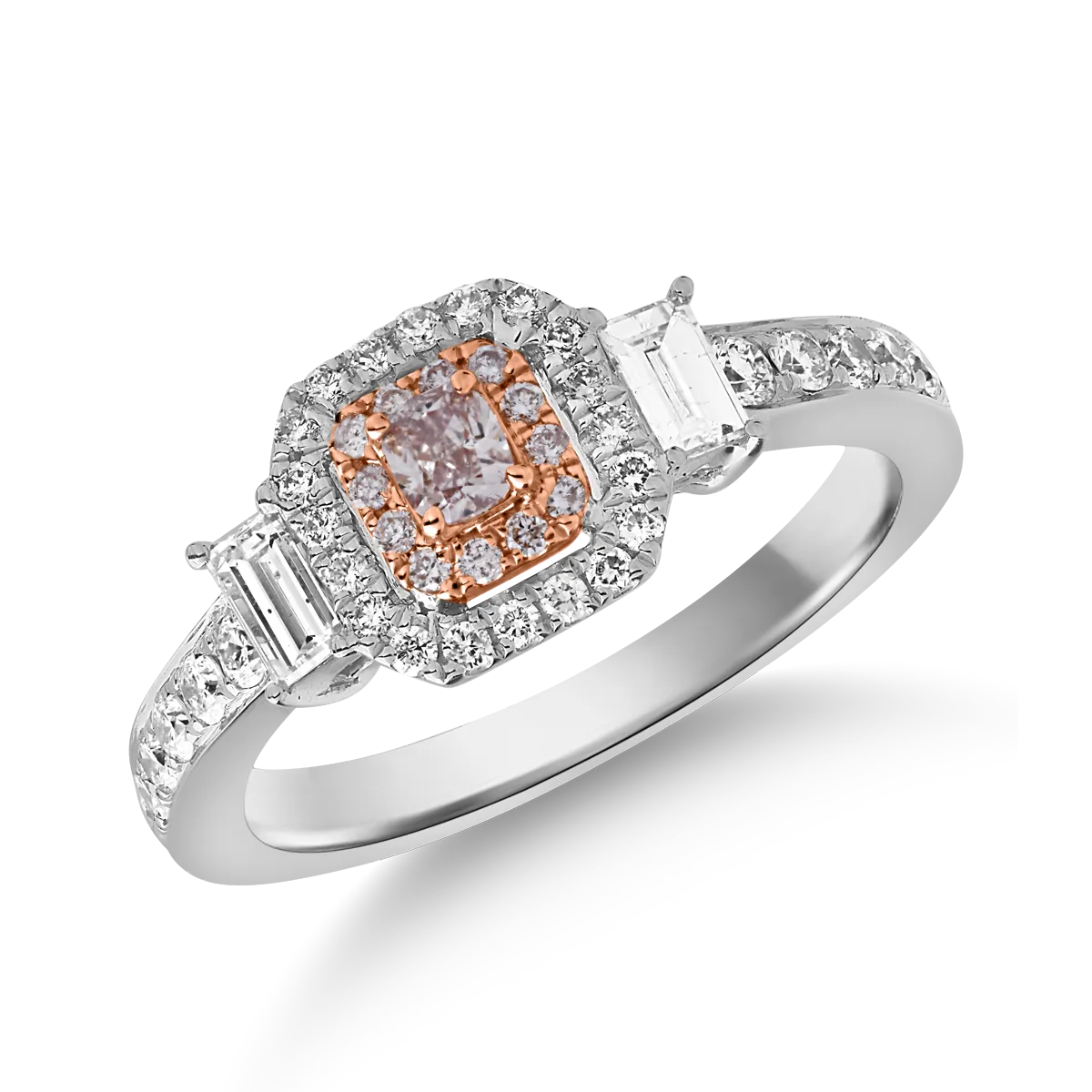 Inel din aur alb-roz cu diamante roz rectangulare si rotunde de 0.25ct si diamante transparente baguette si rotunde de 0.71ct