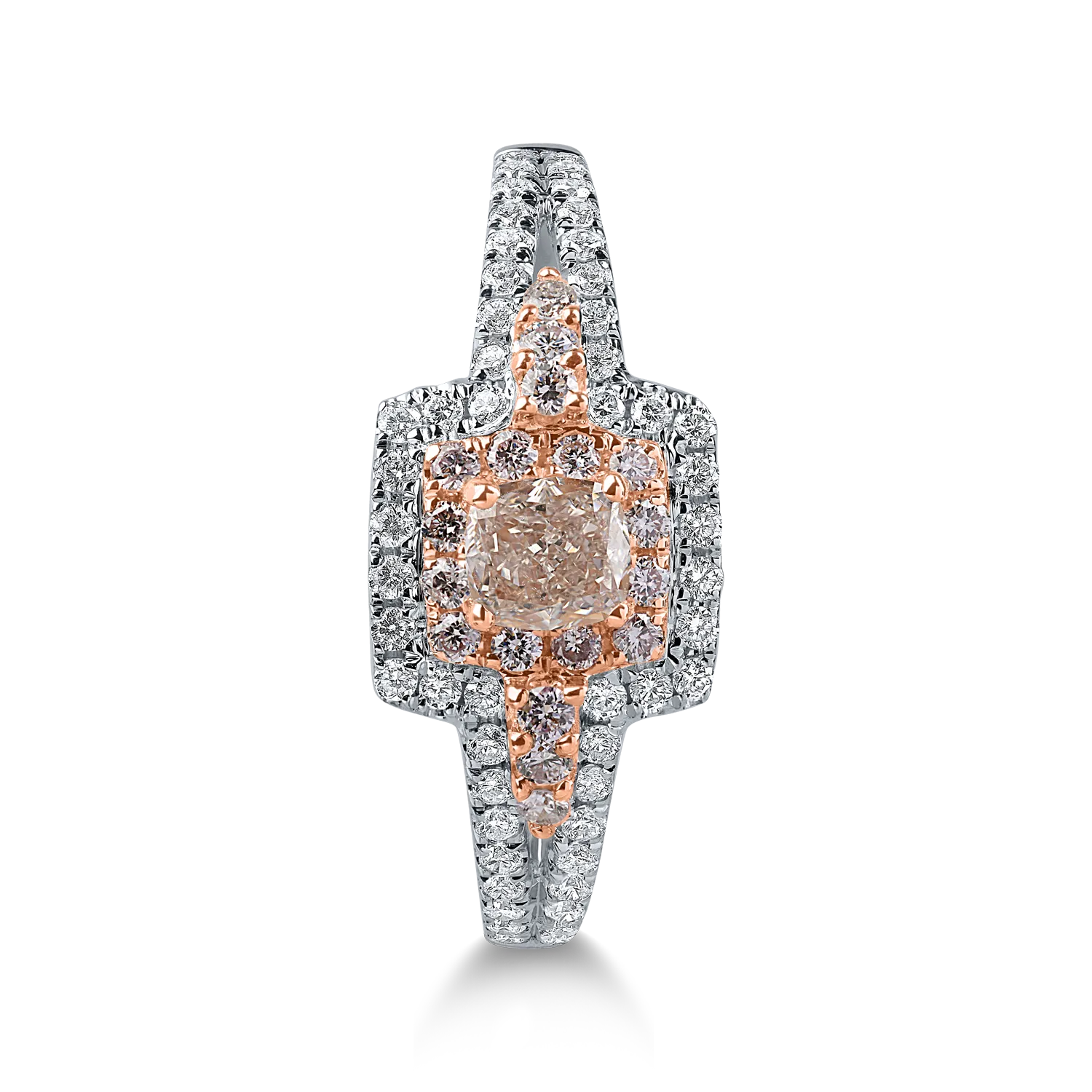 Inel din aur alb-roz cu diamante roz rectangulare si rotunde si diamante incolore de 0.8ct