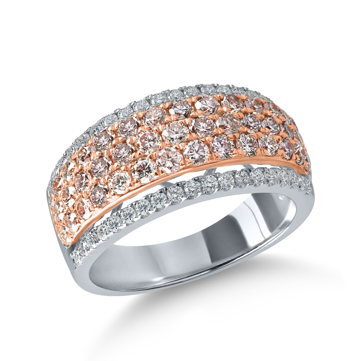 Inel din aur alb-roz cu diamante roz si incolore de 1.7ct